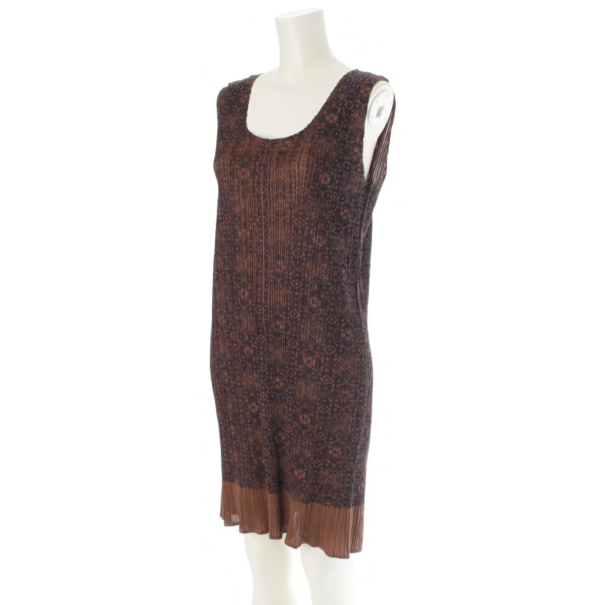プリーツプリーズ イッセイミヤケ 総柄 ノースリーブ ミニ丈 ワンピース ドレス PP72-JH819 ブラウン ブラック 4