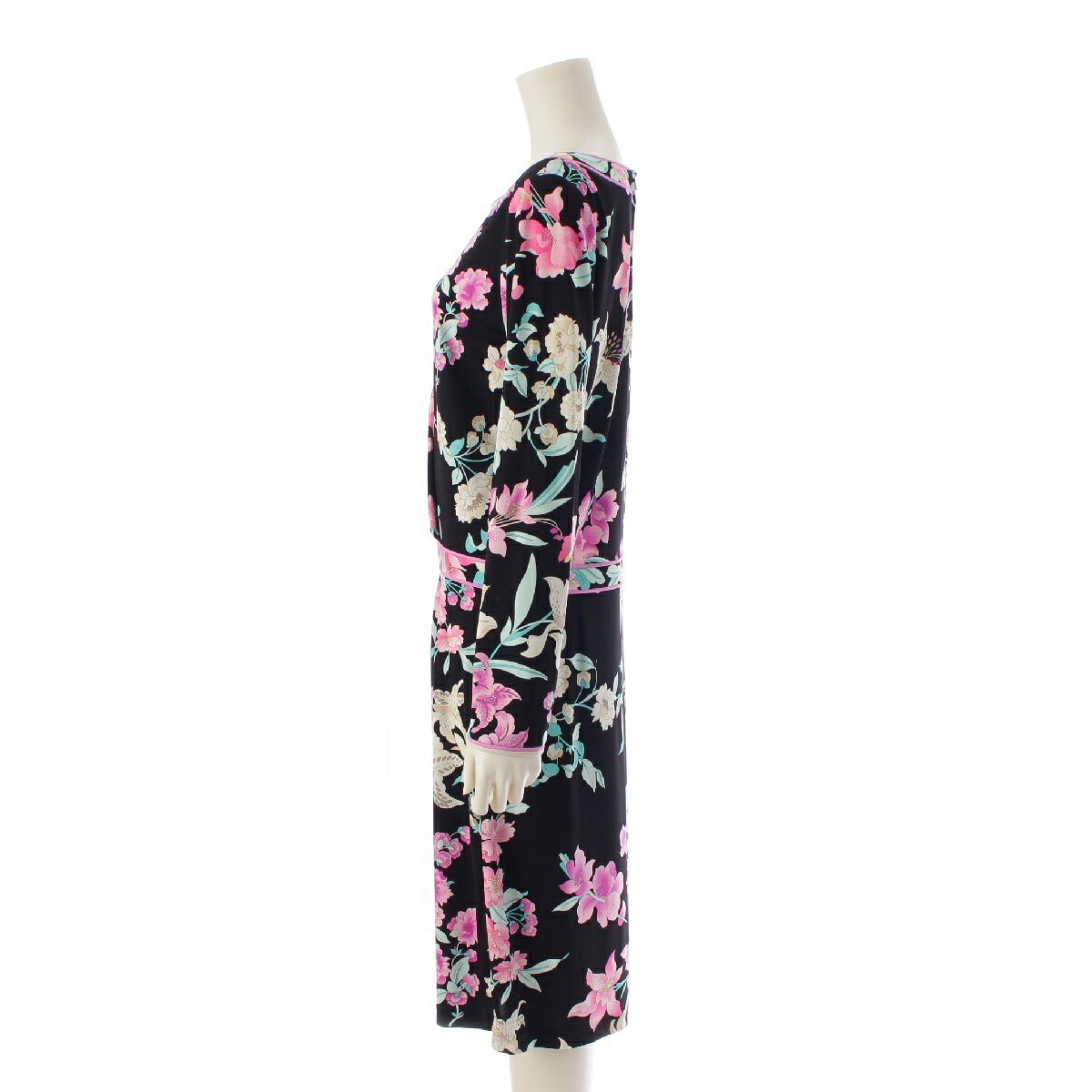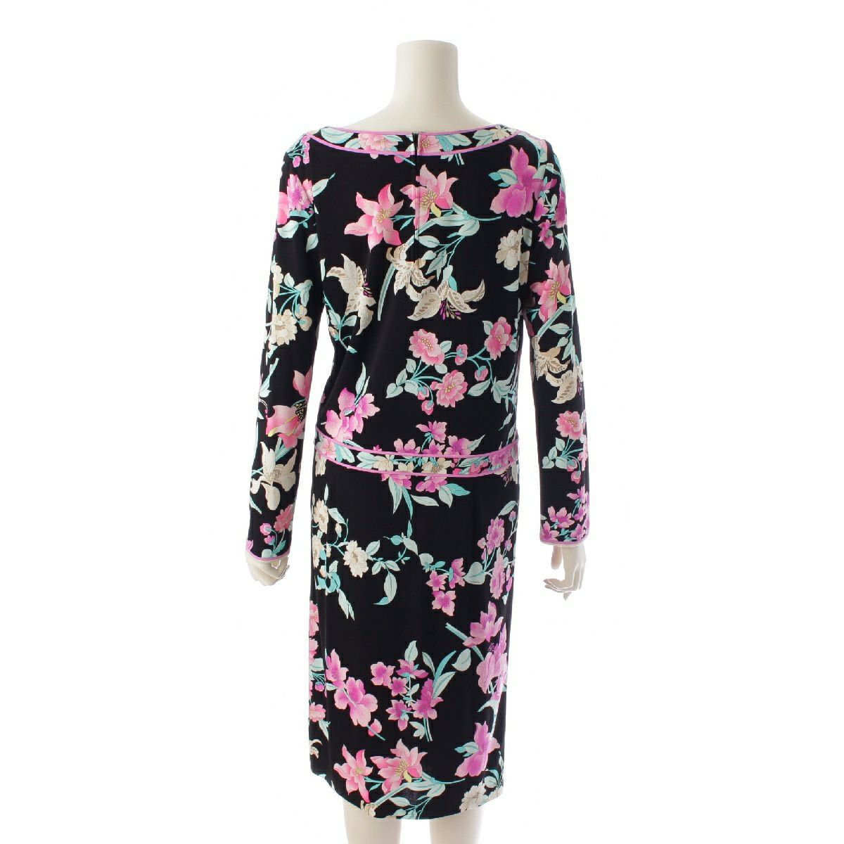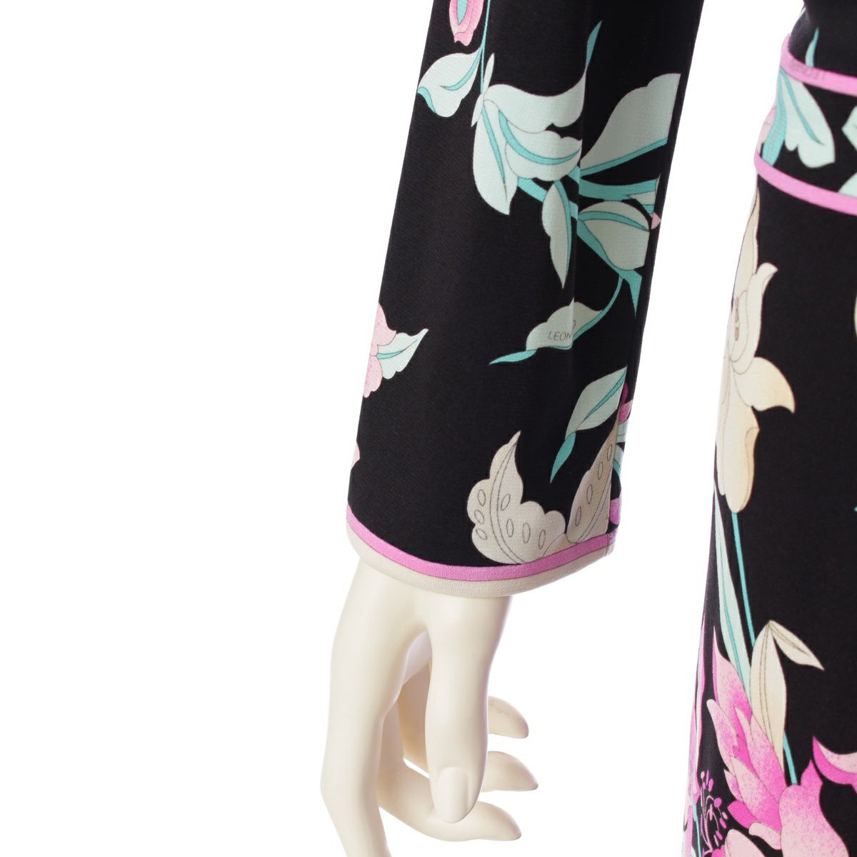 レオナール カンカン素材 花柄 ラウンドネック ワンピース ドレス 0160223 ブラック 40