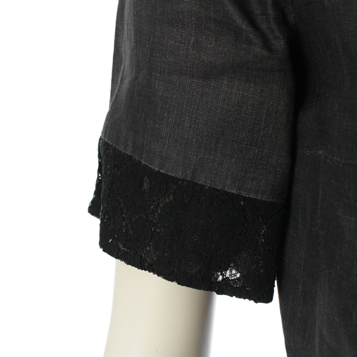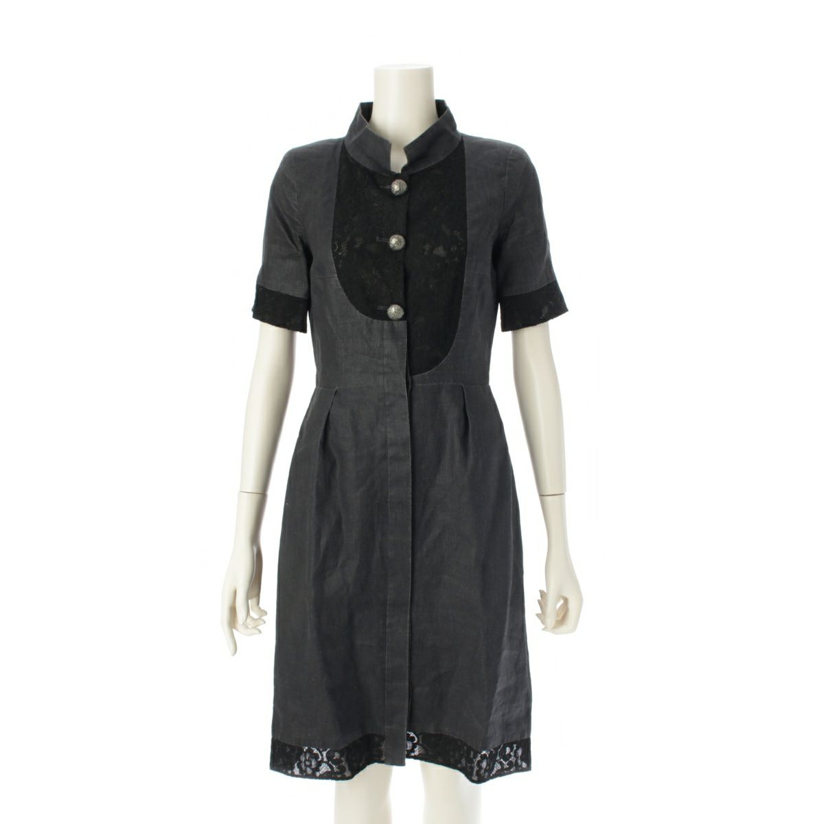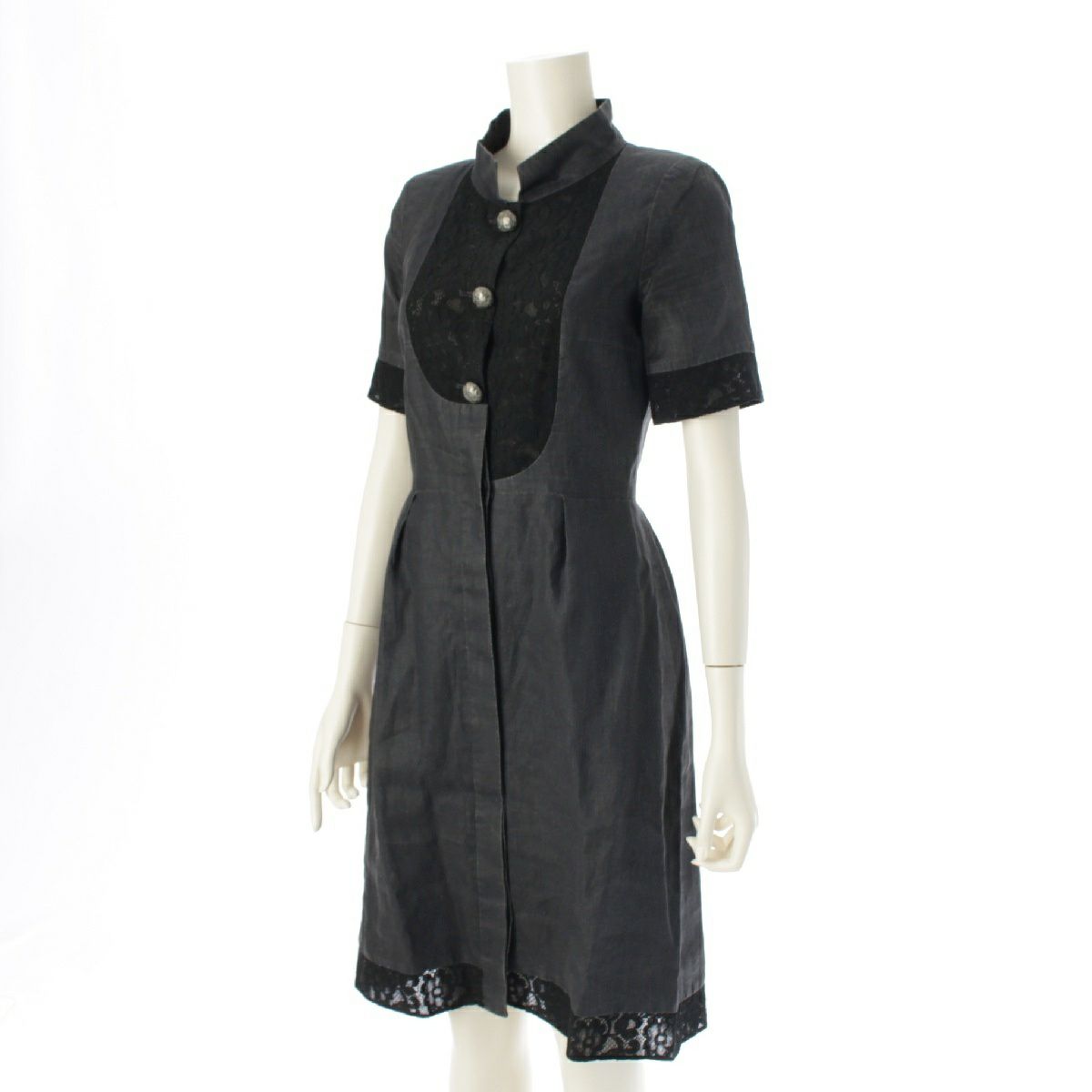 シャネル リネン アシンメトリー レース ラメボタン ワンピース 半袖 ドレス P51025 ブラック 34