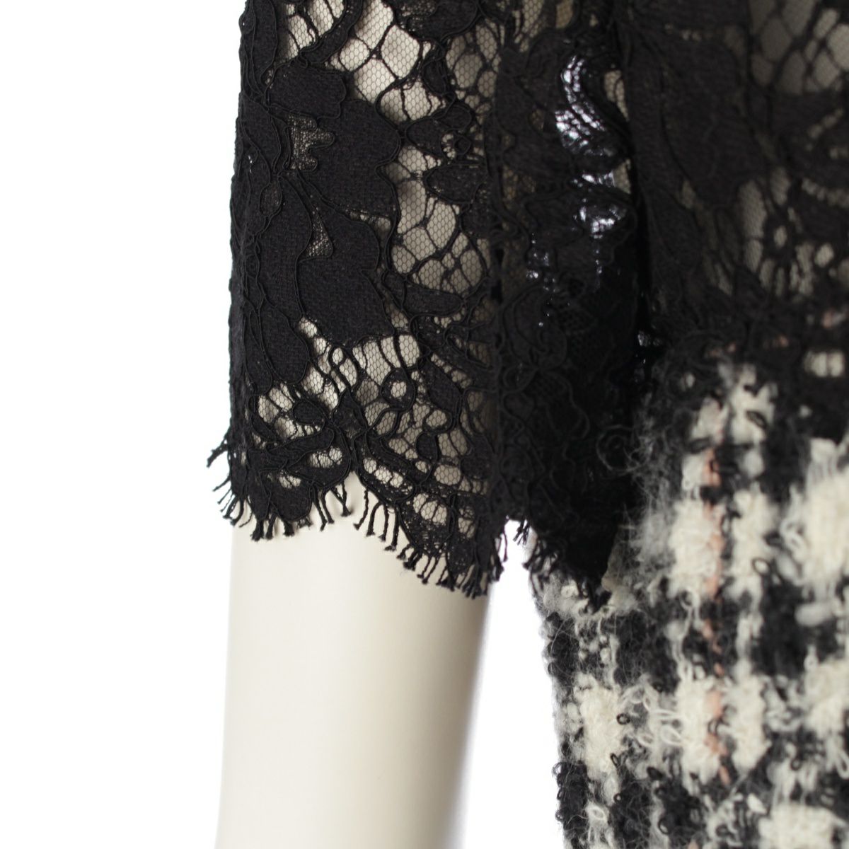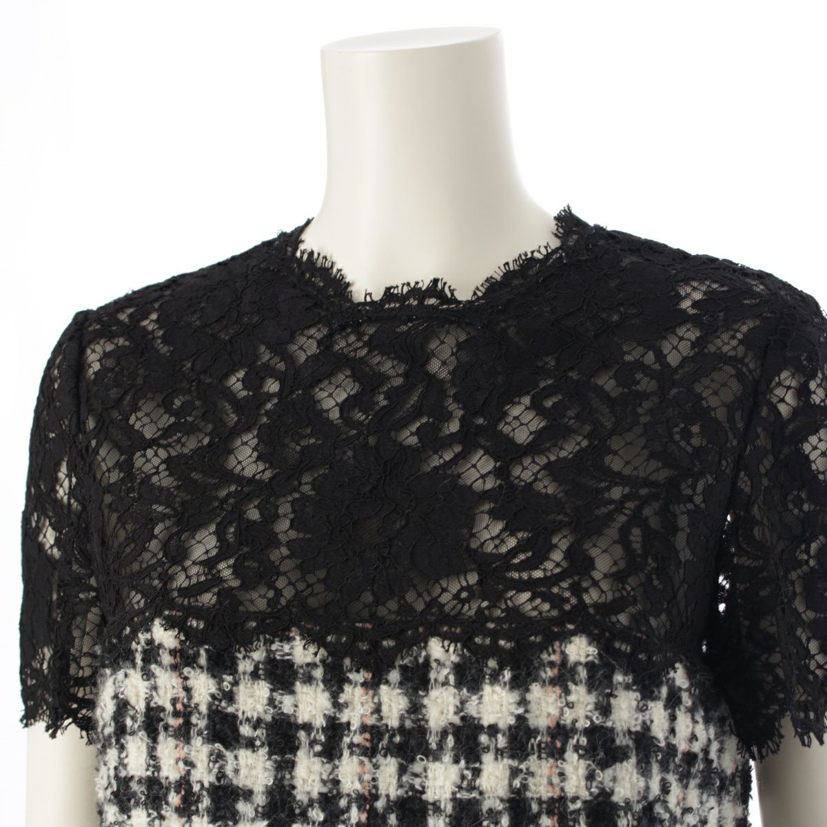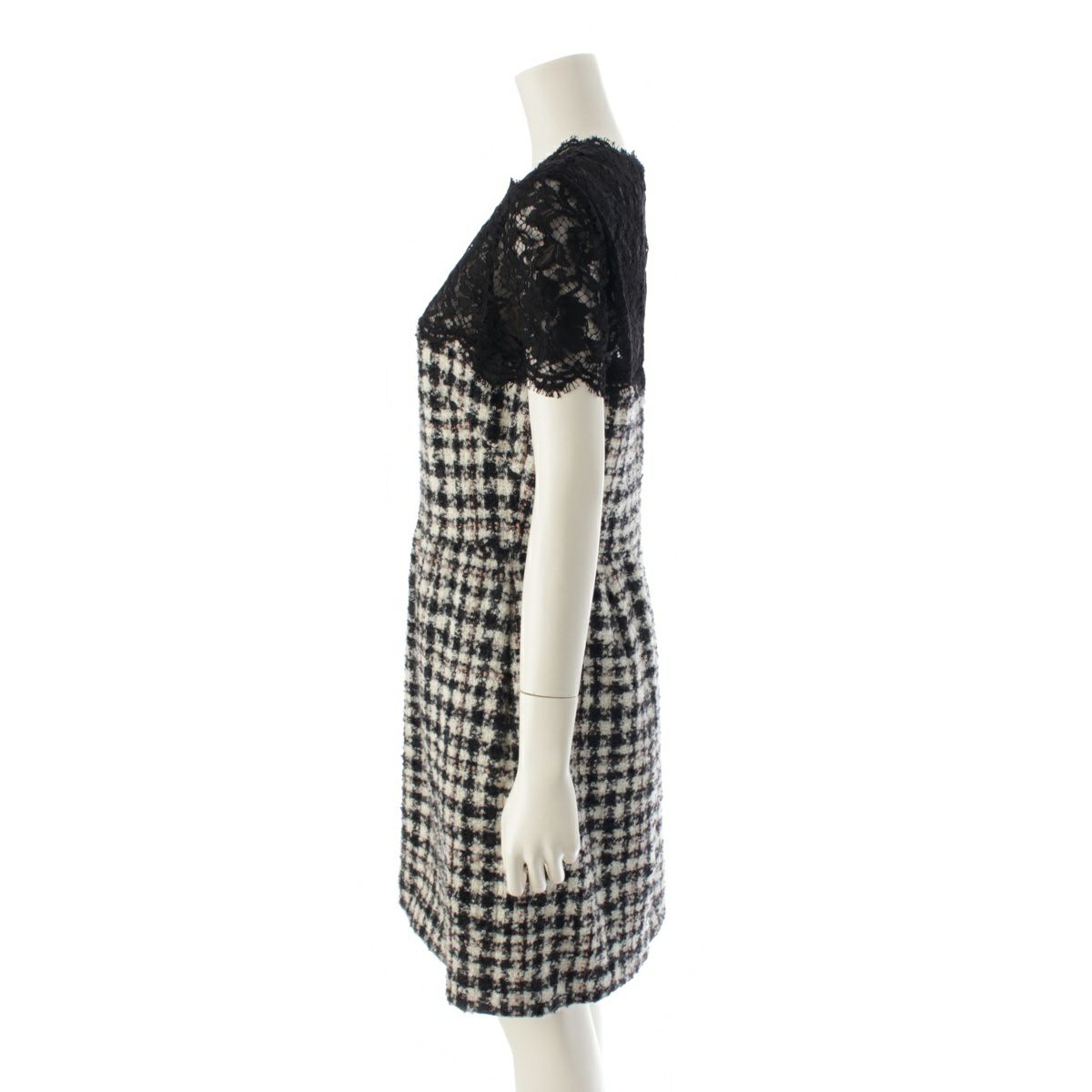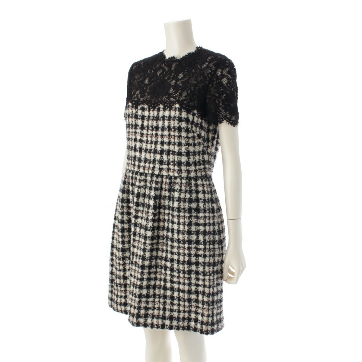 ヴァレンティノ ウール ツイード ノースリーブ レース ワンピース ドレス ブラック ホワイト 42