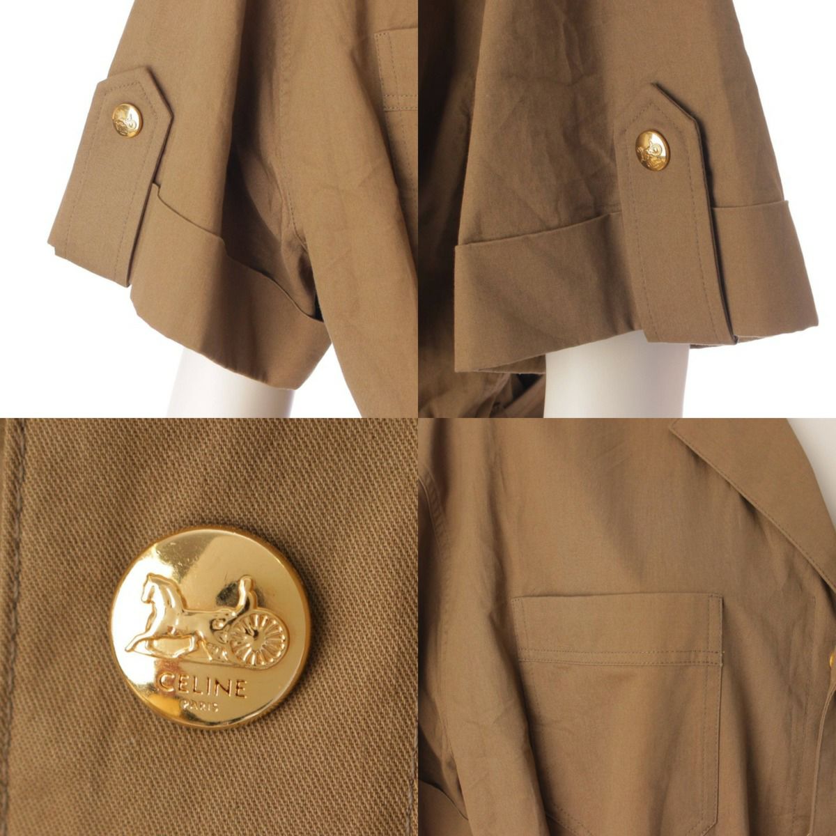 セリーヌ 半袖 コットンツイル サファリドレス ワンピース 2R61C575P オリーブ 36