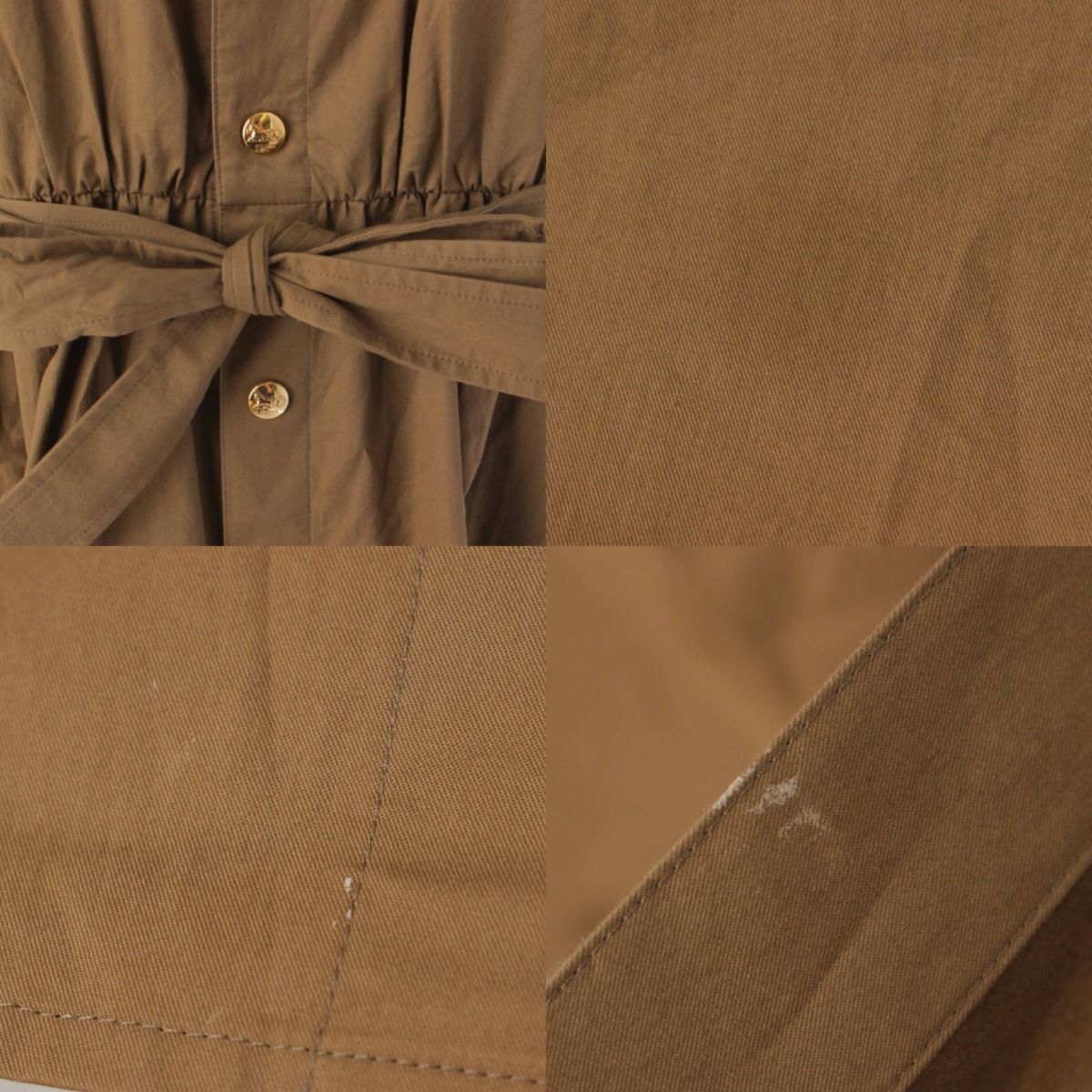 全体的に多少の毛羽立ちやシワ、裾や裏地下部などにシミや汚れあり