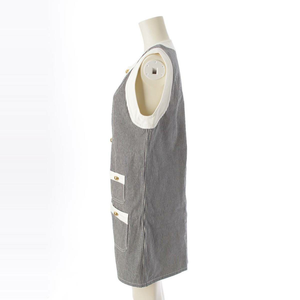 セリーヌ 23SS トラペーズ トリオンフ ヒッコリー ストライプ ワンピース ネイビー×ホワイト M
