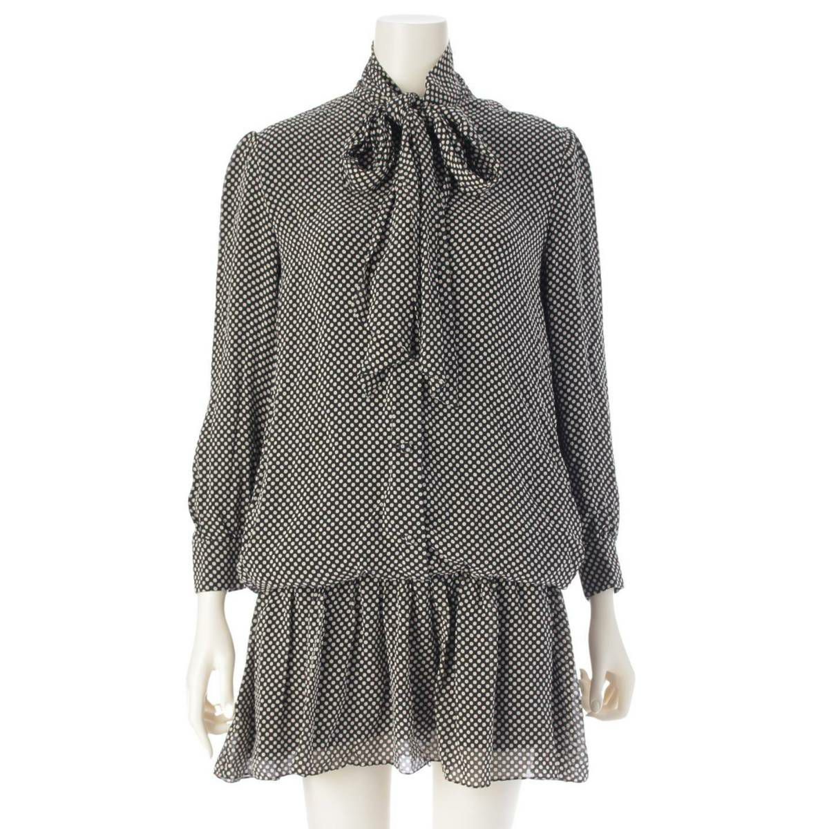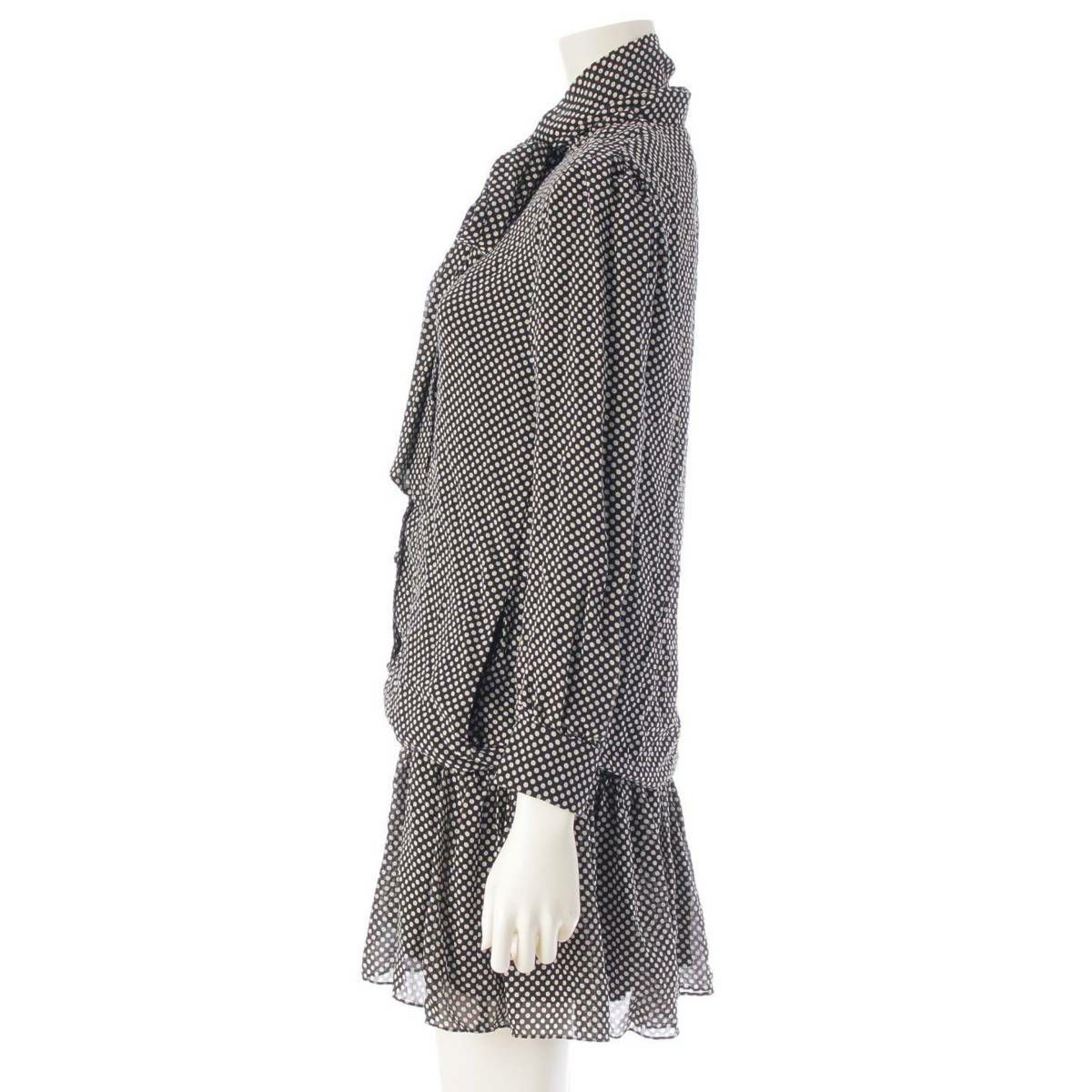 セリーヌ 20ss ボウタイ シルク ドット ミニ ワンピース ドレス 2R353150E ブラック 36