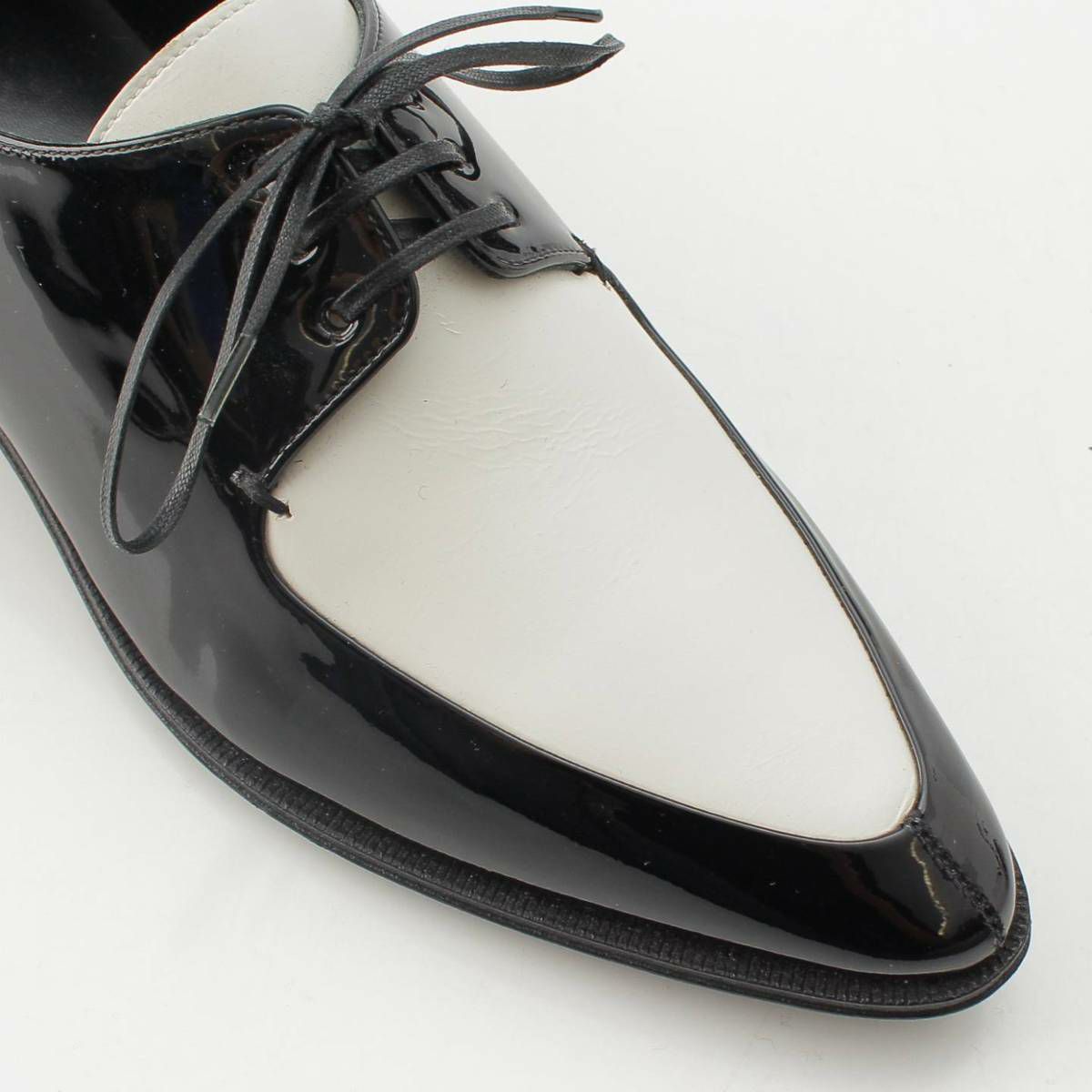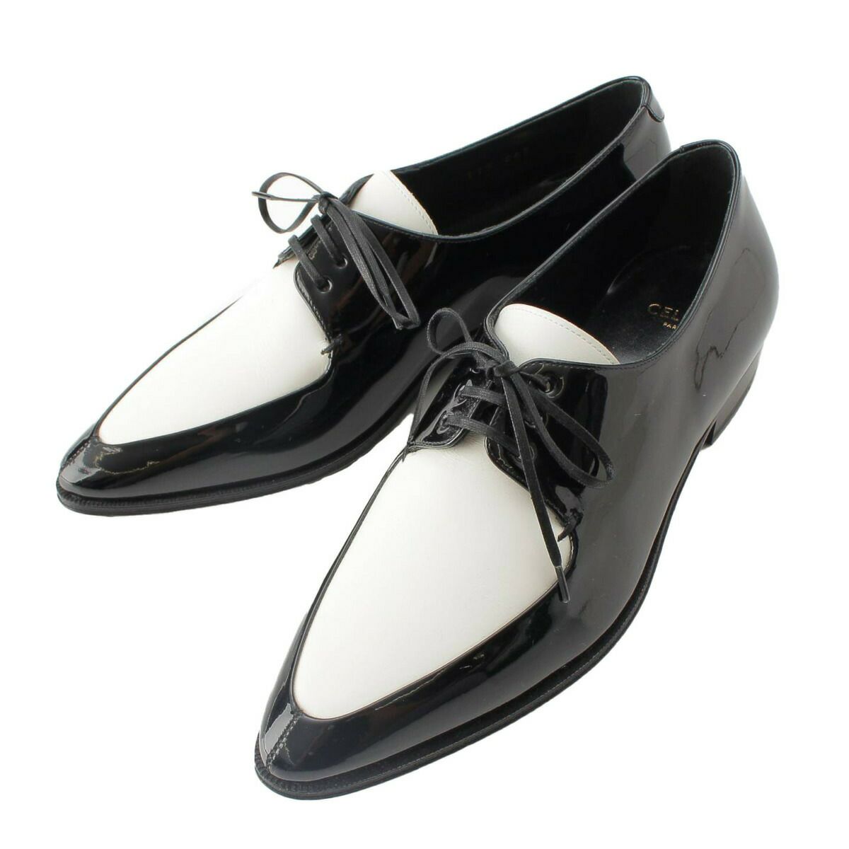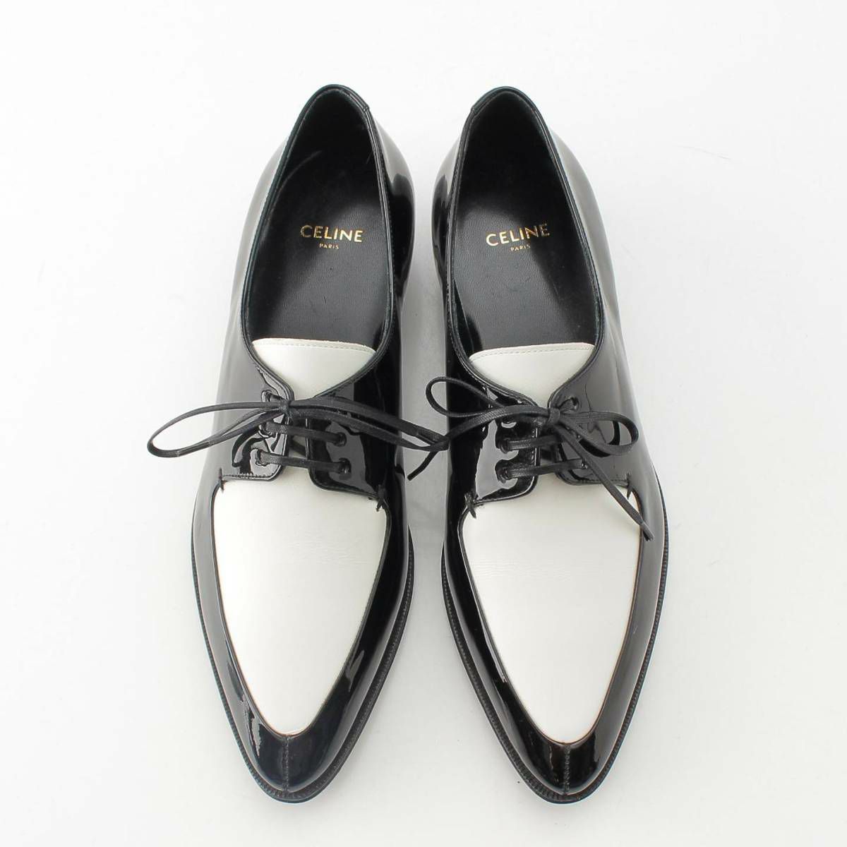 セリーヌ パテント クリーパー レースアップ ドレス シューズ ブラック ホワイト 36 1/2