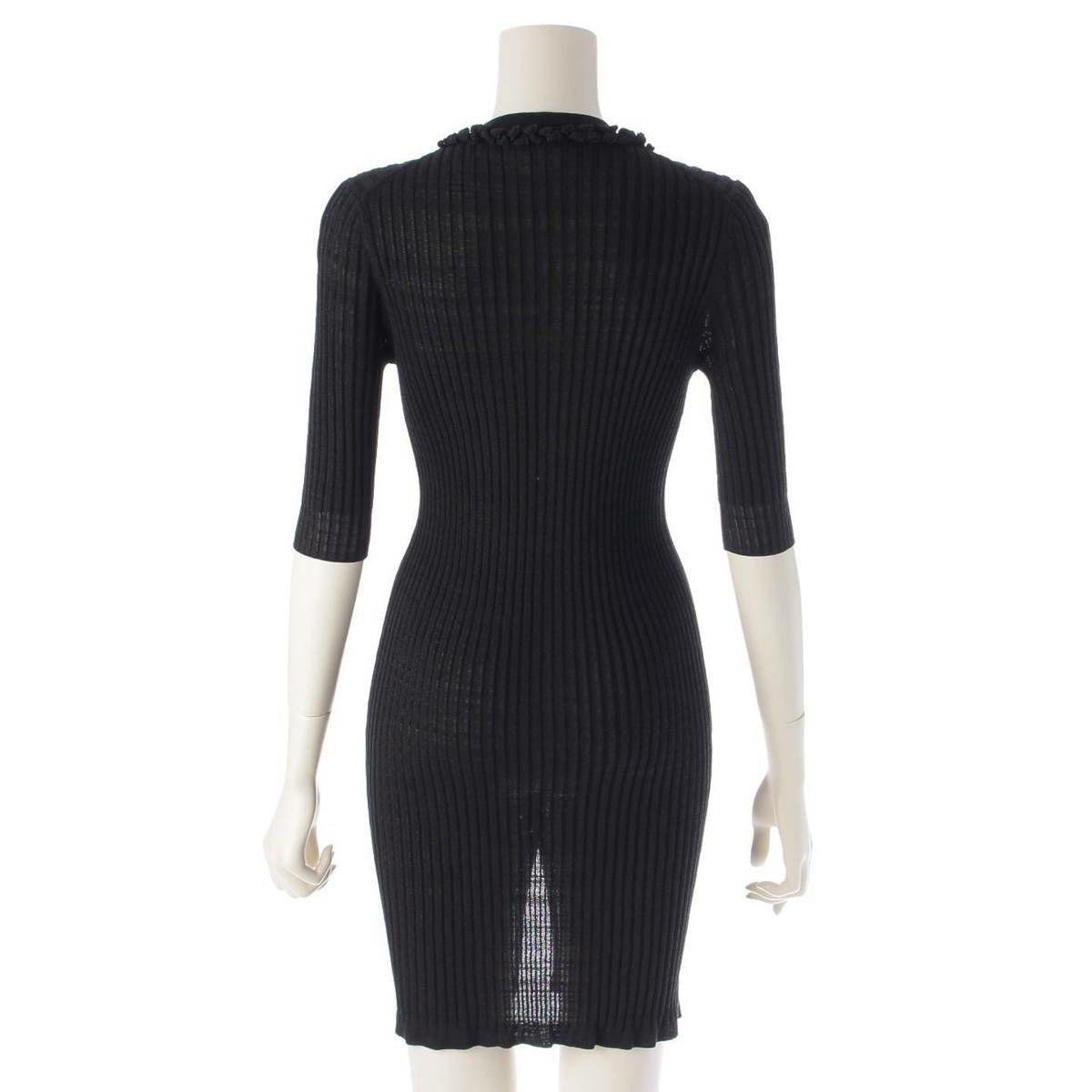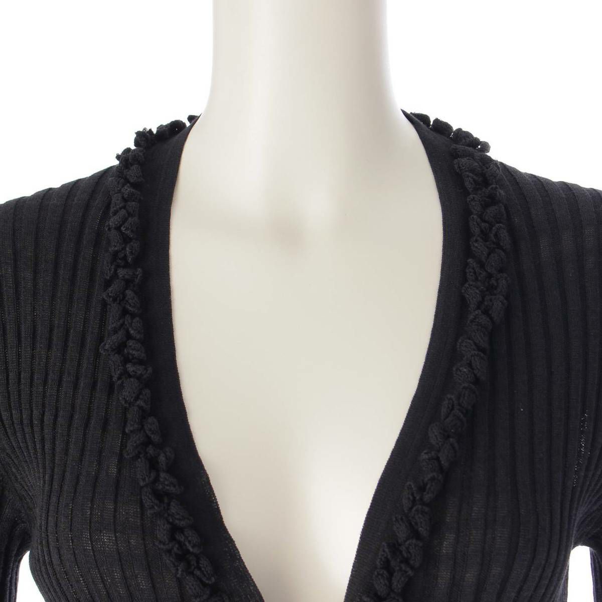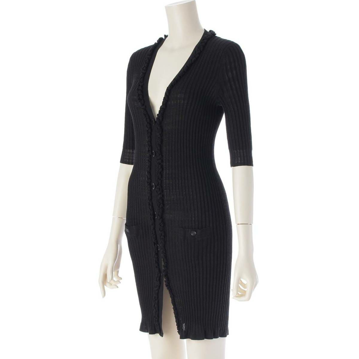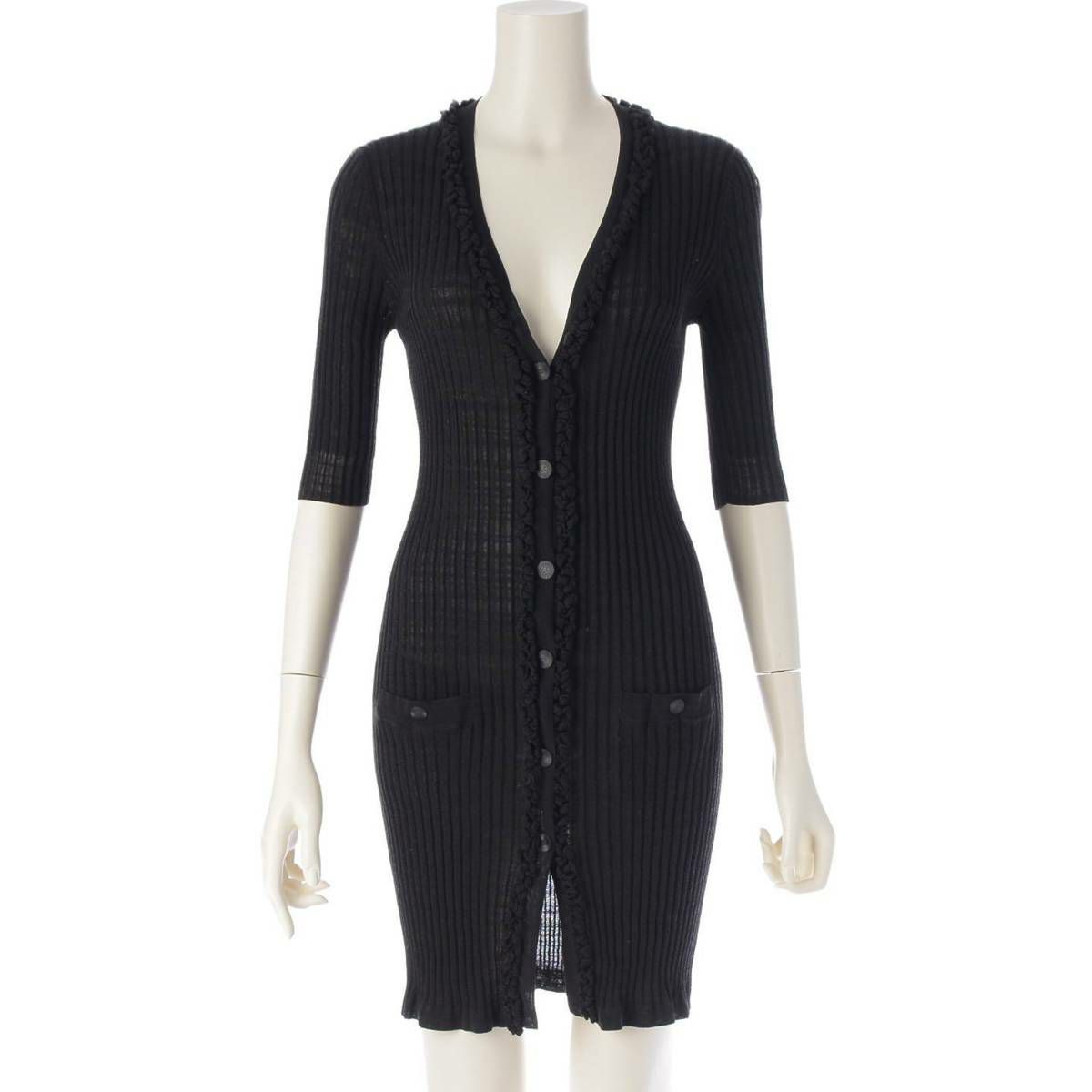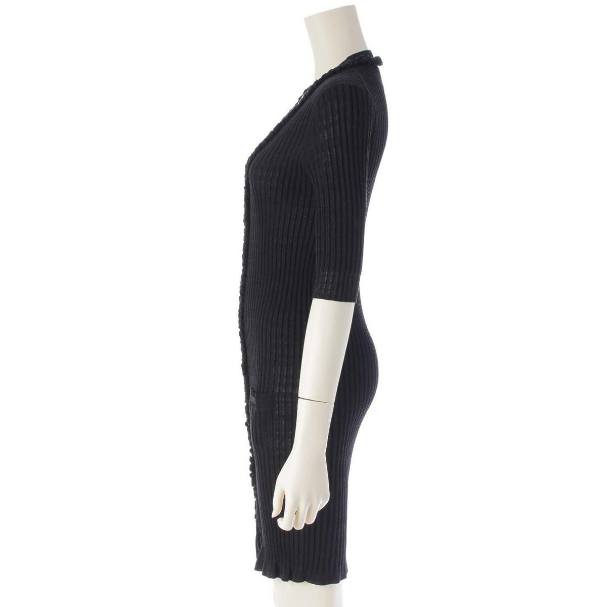 シャネル 09P ココボタン コットン リブニット ワンピース カーディガン P35193 ブラック 36