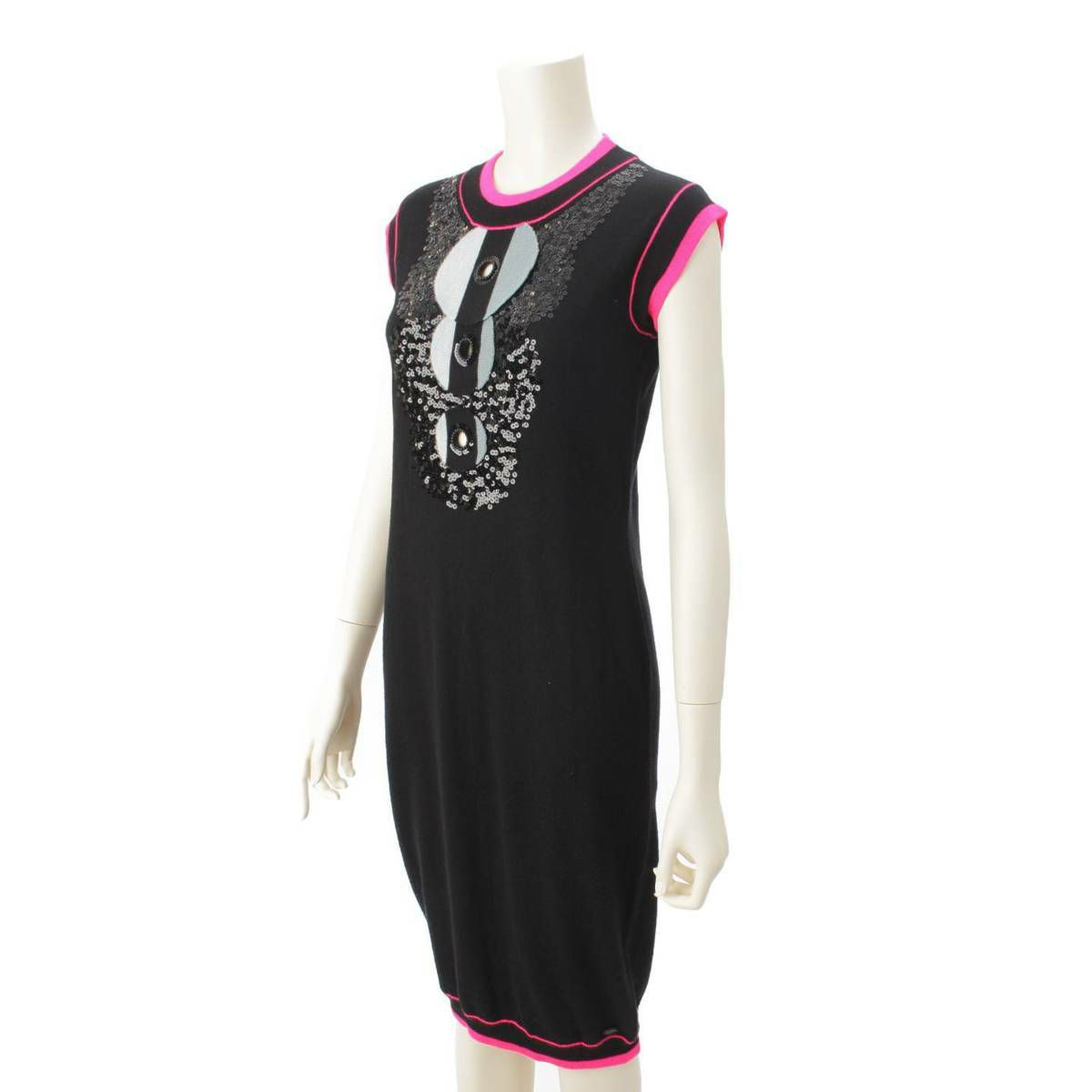 シャネル 08P ノースリーブ スパンコール ビーズ ニット ワンピース P33257 ブラック 36