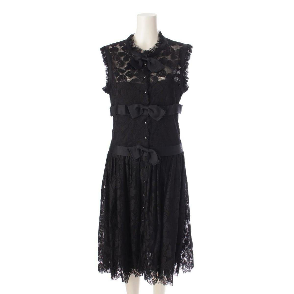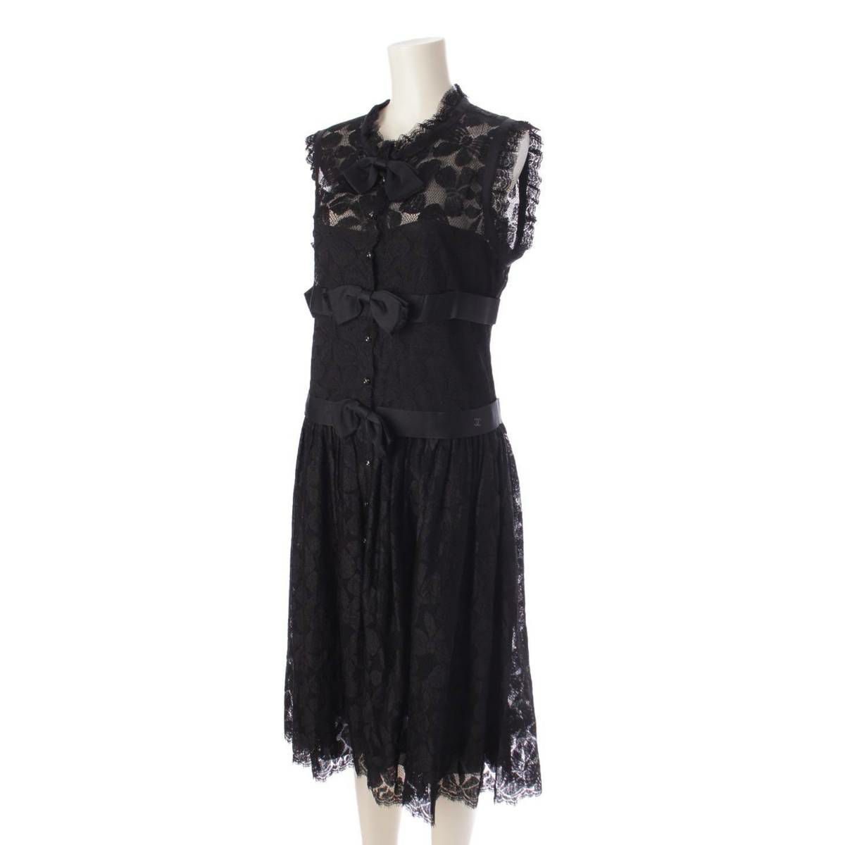 シャネル 05A ココマーク レース リボン ノースリーブ ワンピース ドレス P26407 ブラック 38