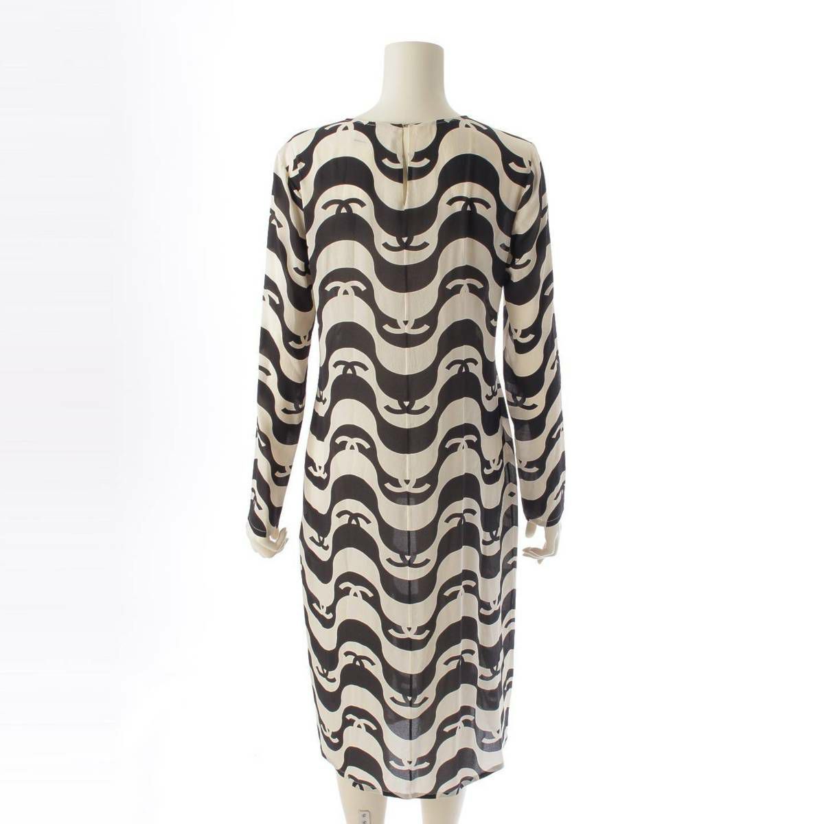 シャネル シルククレープ ココマーク ドレス ワンピース P70216 ブラック×エクリュ 38
