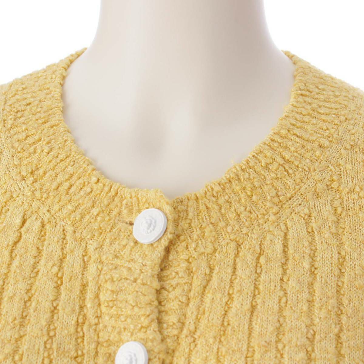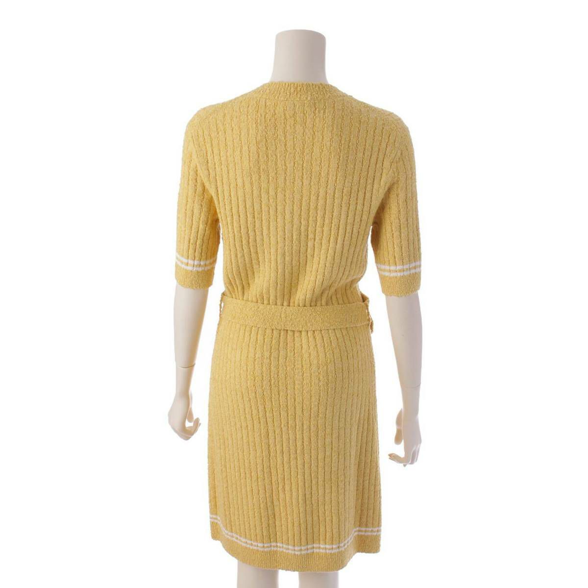 シャネル 22SS ライオンボタン ベルテッド リブニット ワンピース P72176 イエロー 38