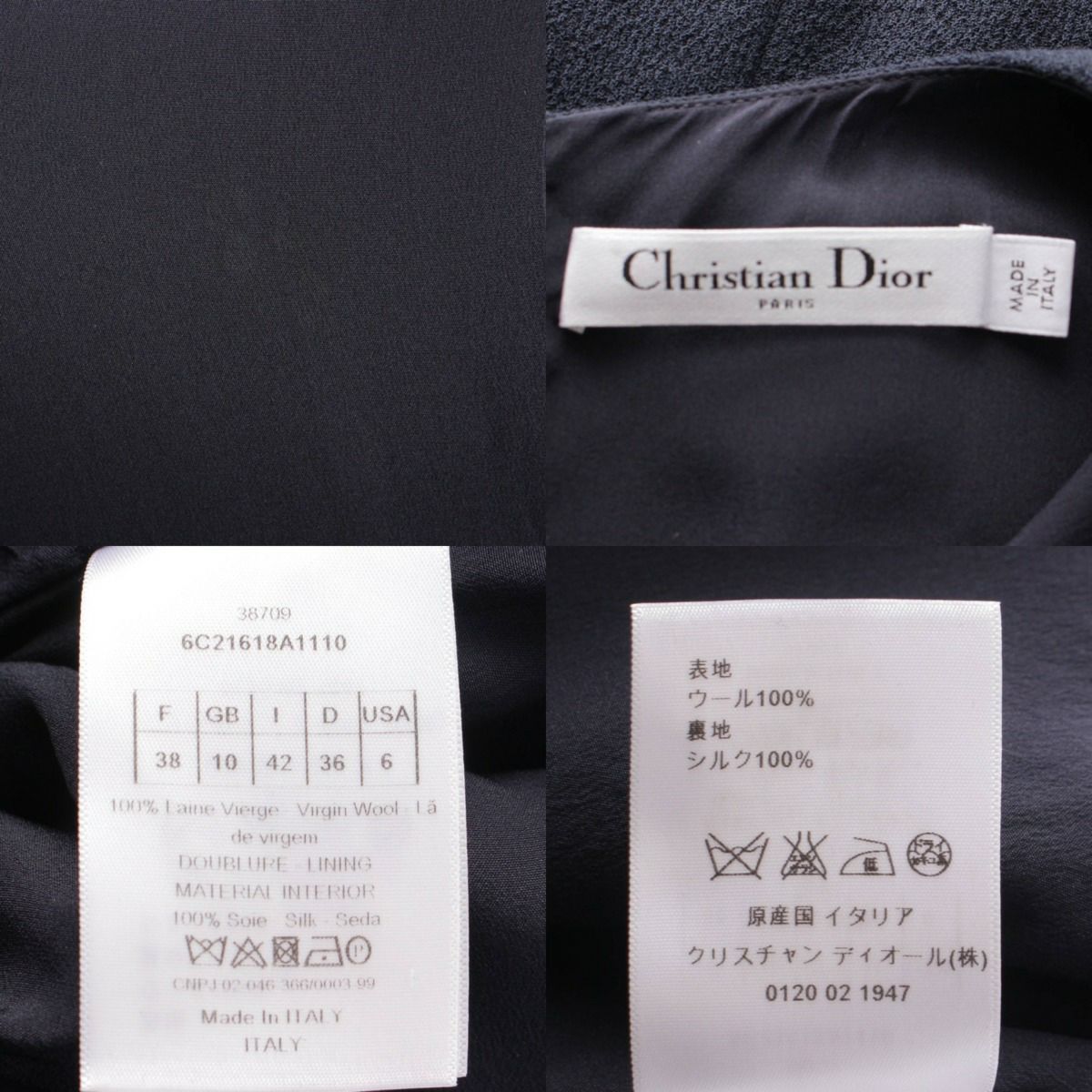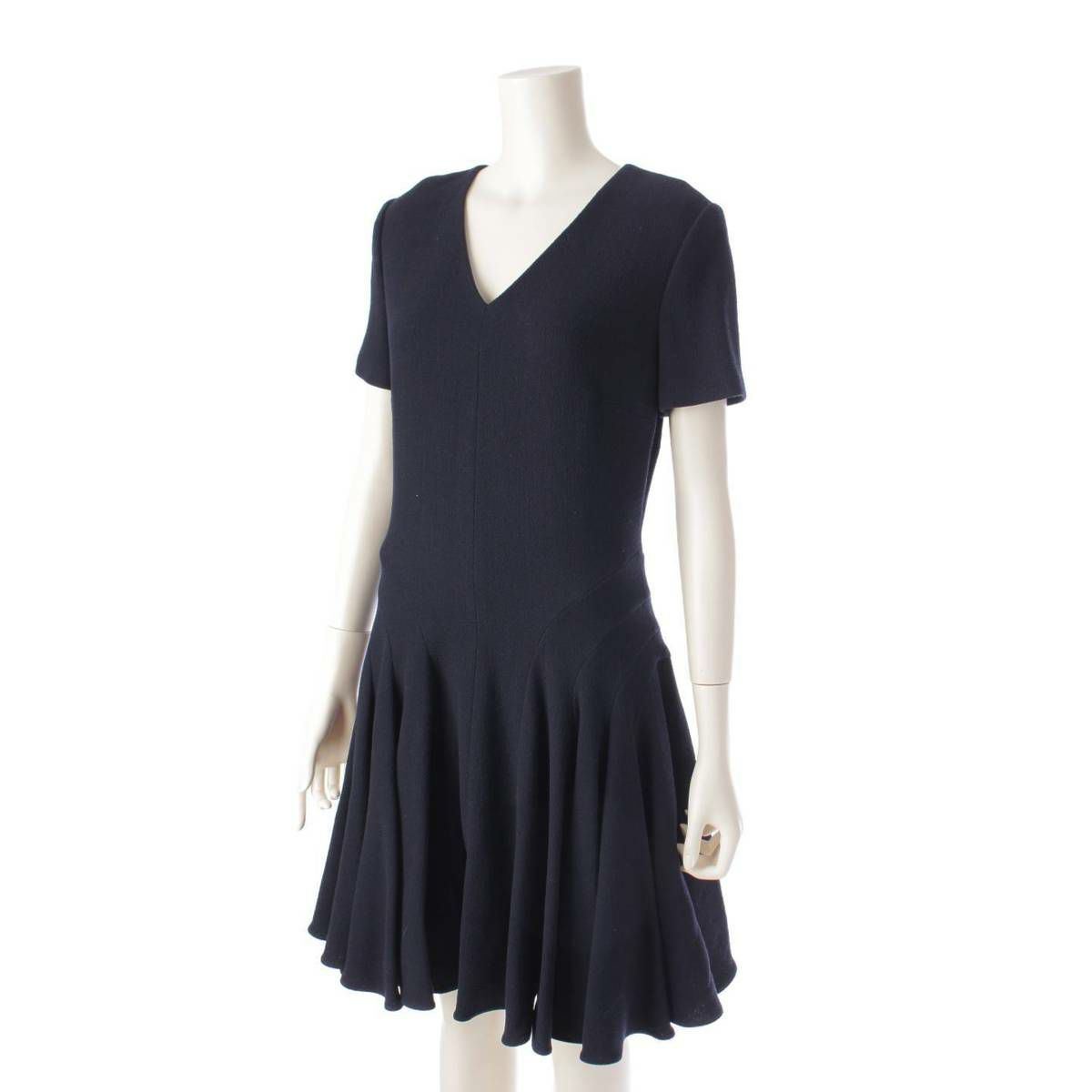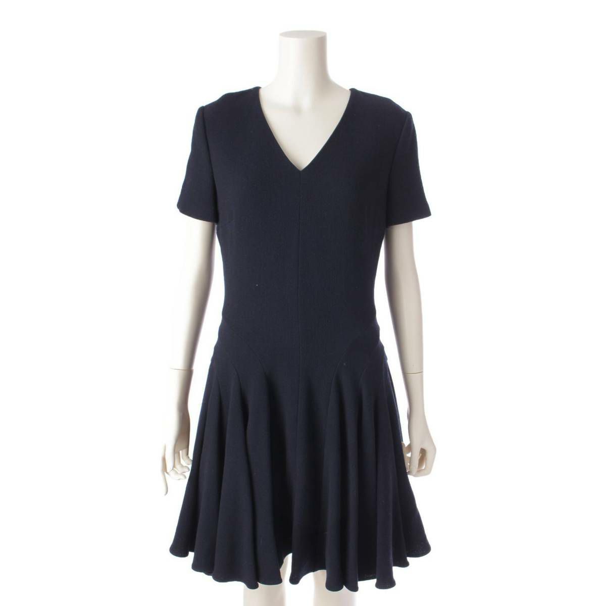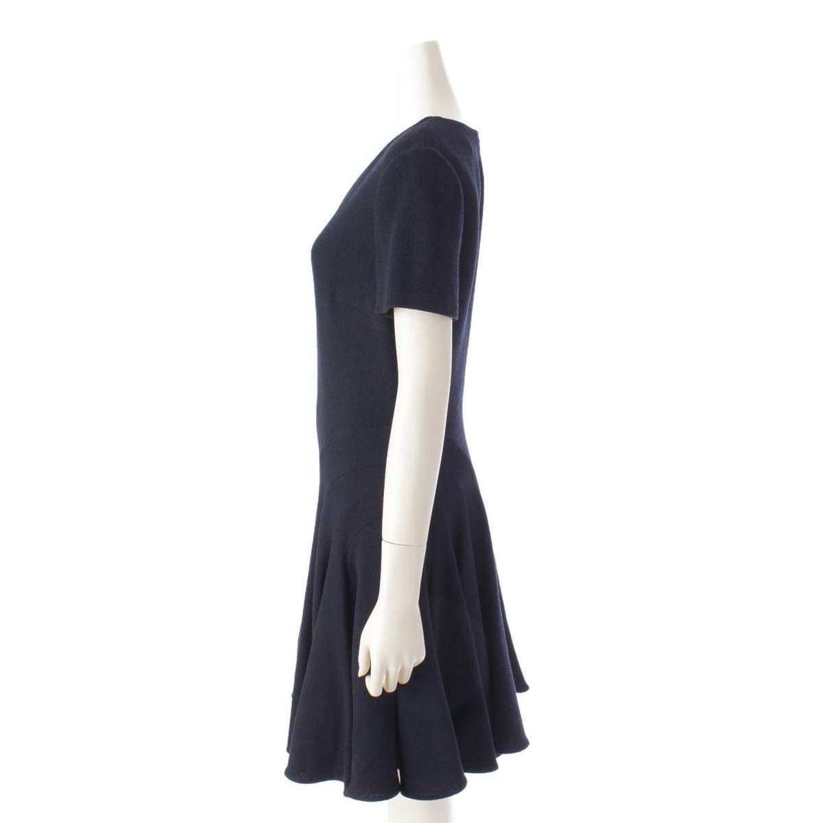 ディオール DIOR ウール Vネック 半袖 バックジップ ドレス ワンピース 6C21618A1110 ネイビー 38