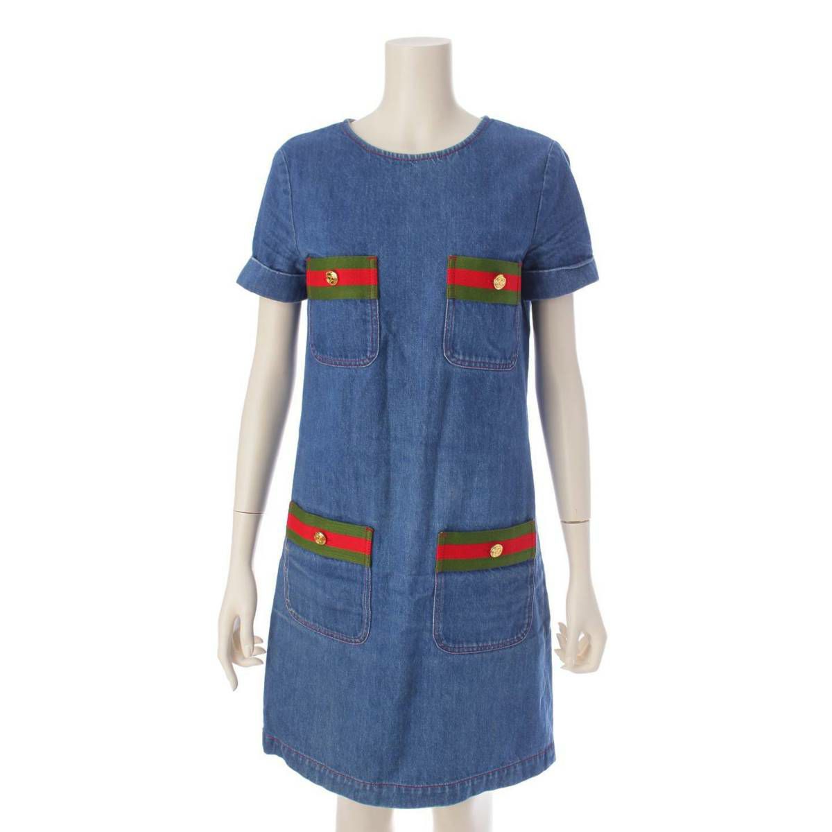 グッチ シェリーライン 半袖 デニム ワンピース ドレス 678827 インディゴ 36
