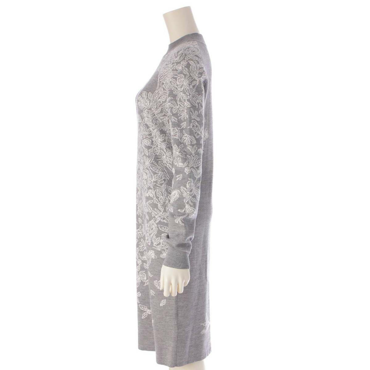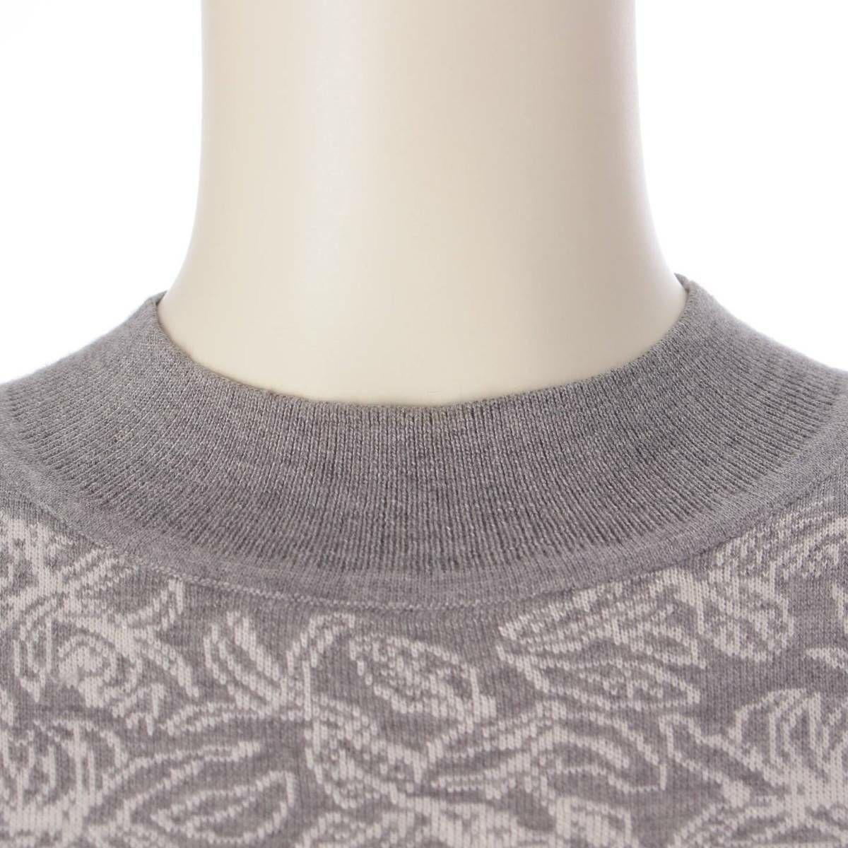 エルメス ジャングルラブ カシミヤ 豹 モックネック ニット ワンピース ドレス グレー 34