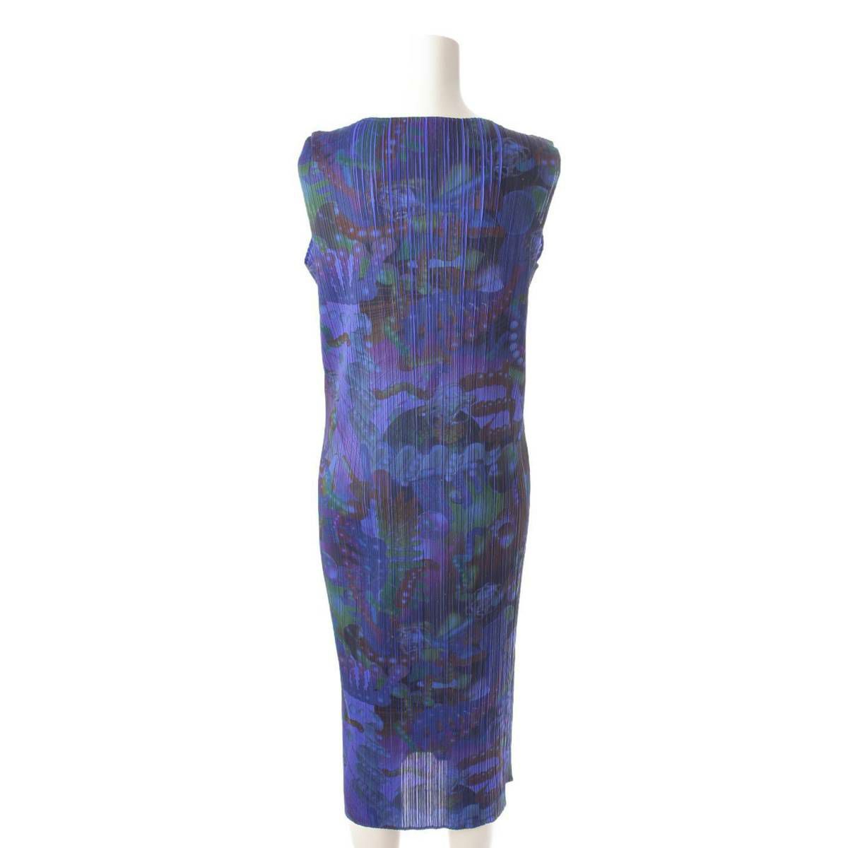 イッセイミヤケ プリーツプリーズ 転写 プリント 3D ART DNA 遺伝子 グラフィック ワンピース ブルー