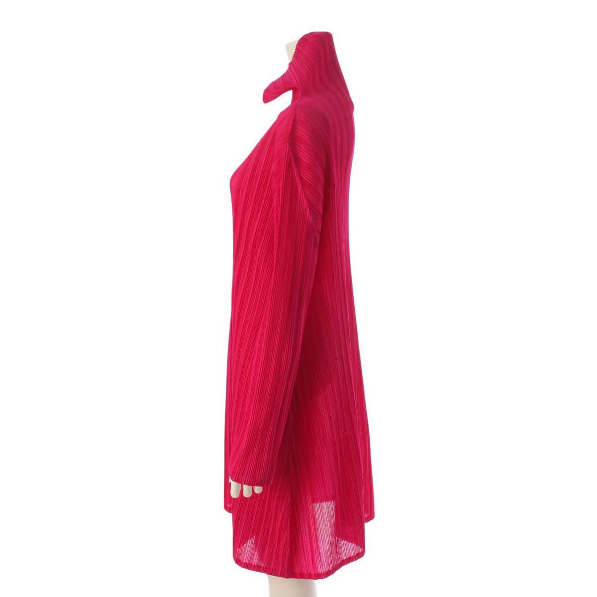 イッセイミヤケ プリーツプリーズ タートルネック 長袖 ワンピース PP43-FH385 ビビッドピンク 3