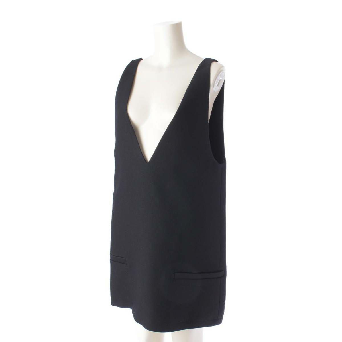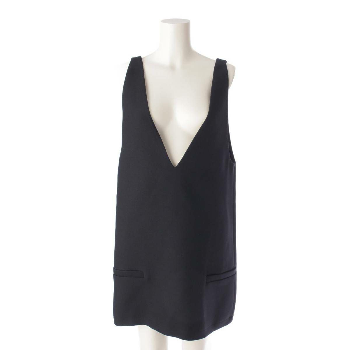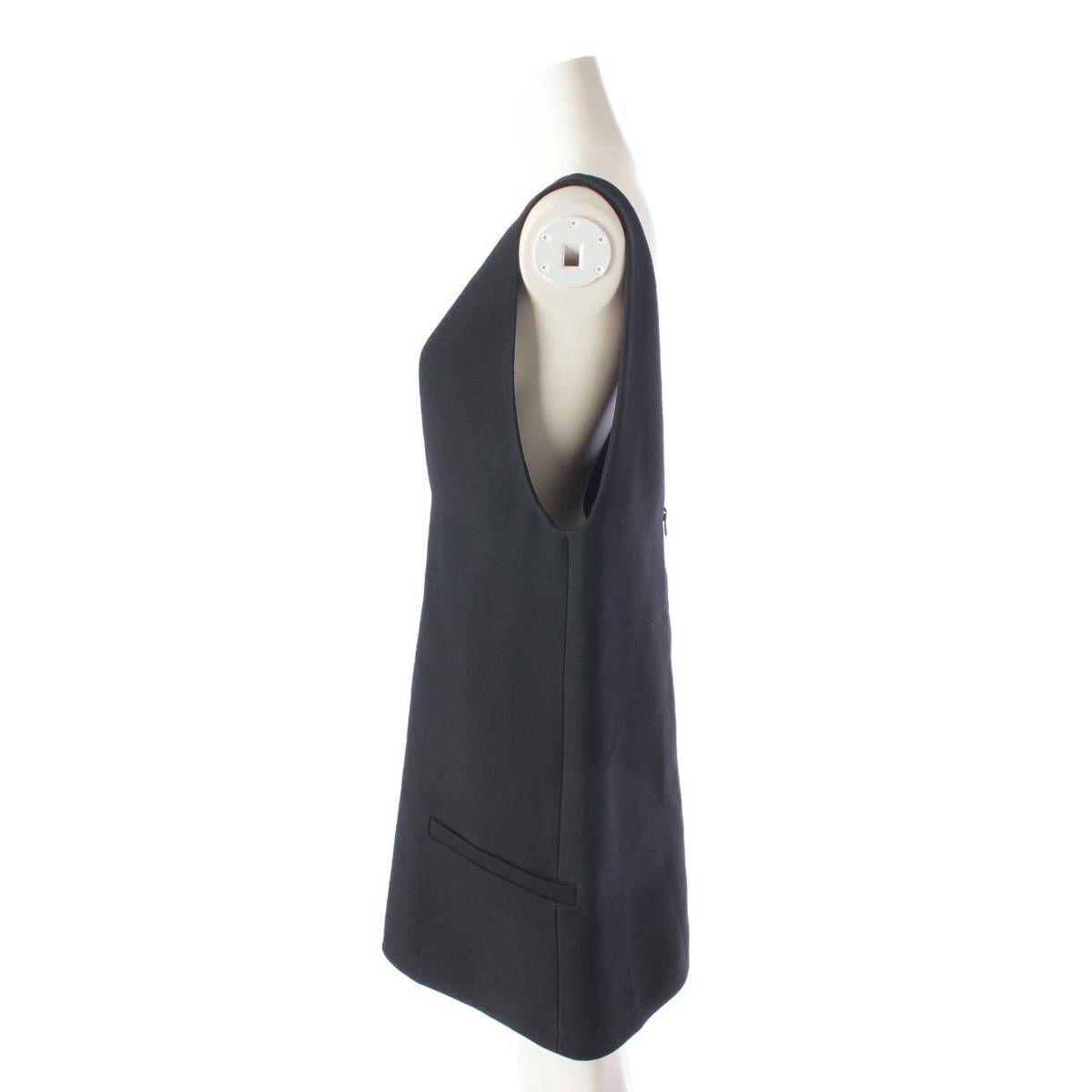 クリスチャンディオール Christian Dior 22SS ウール×シルク バックジップ ショートドレス ワンピース ブラック 36