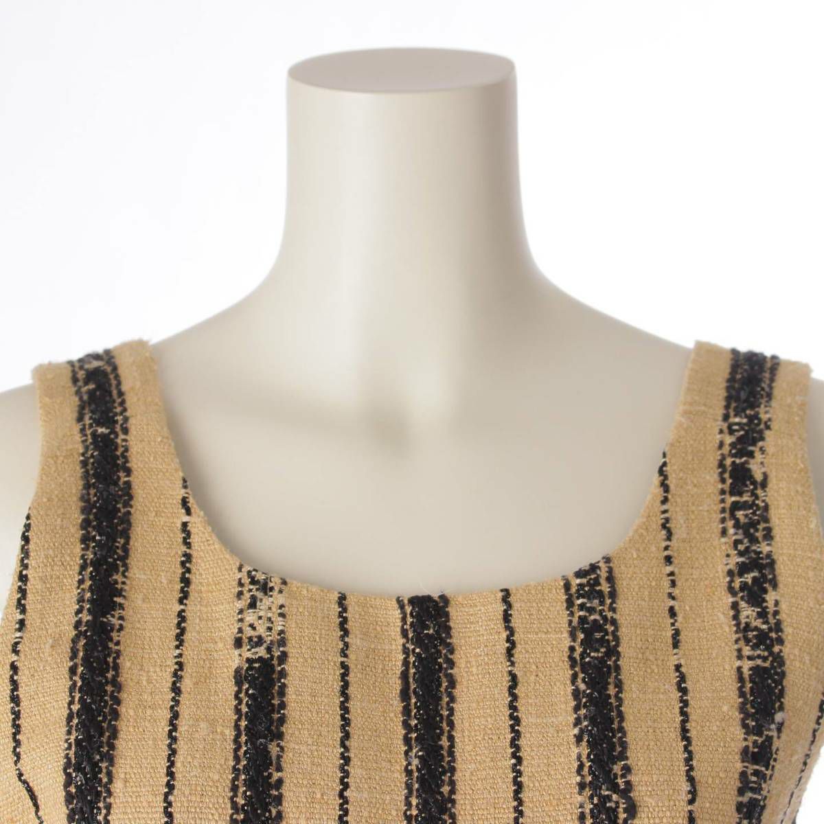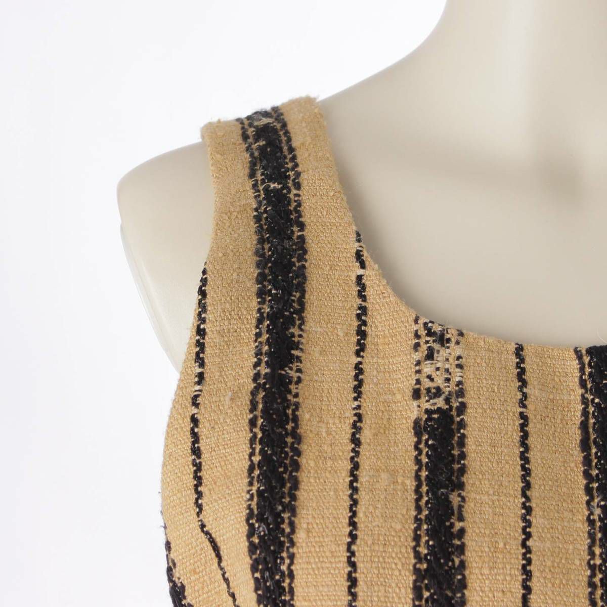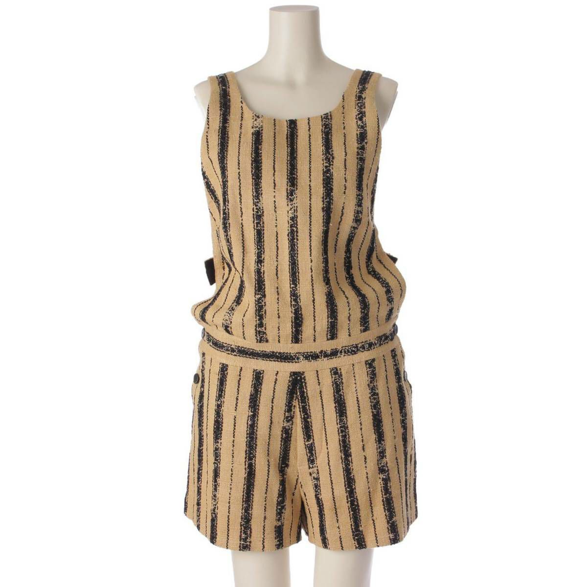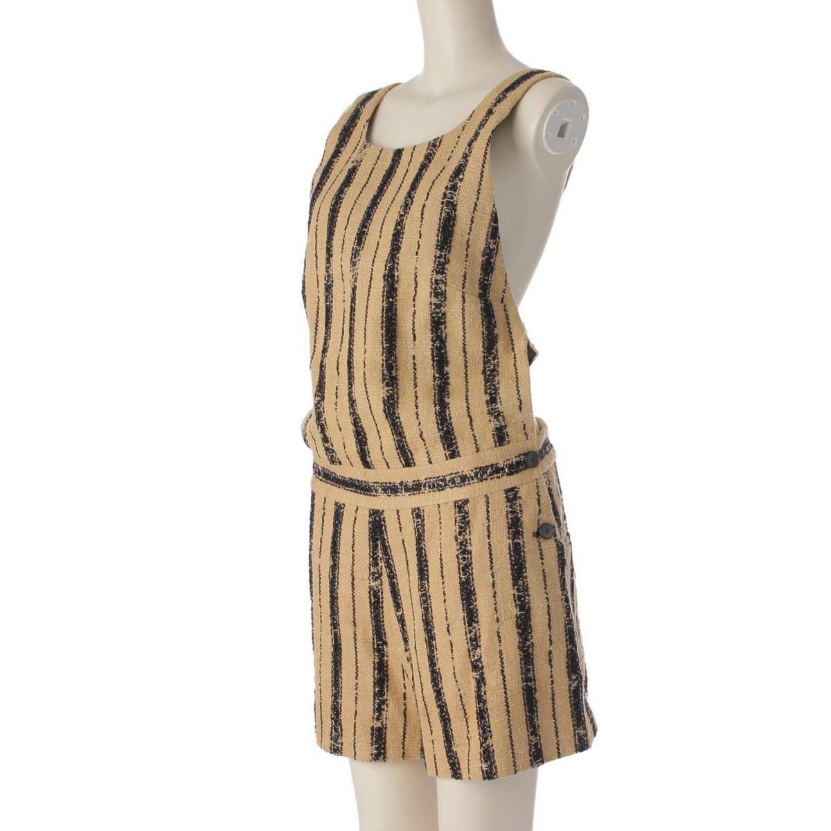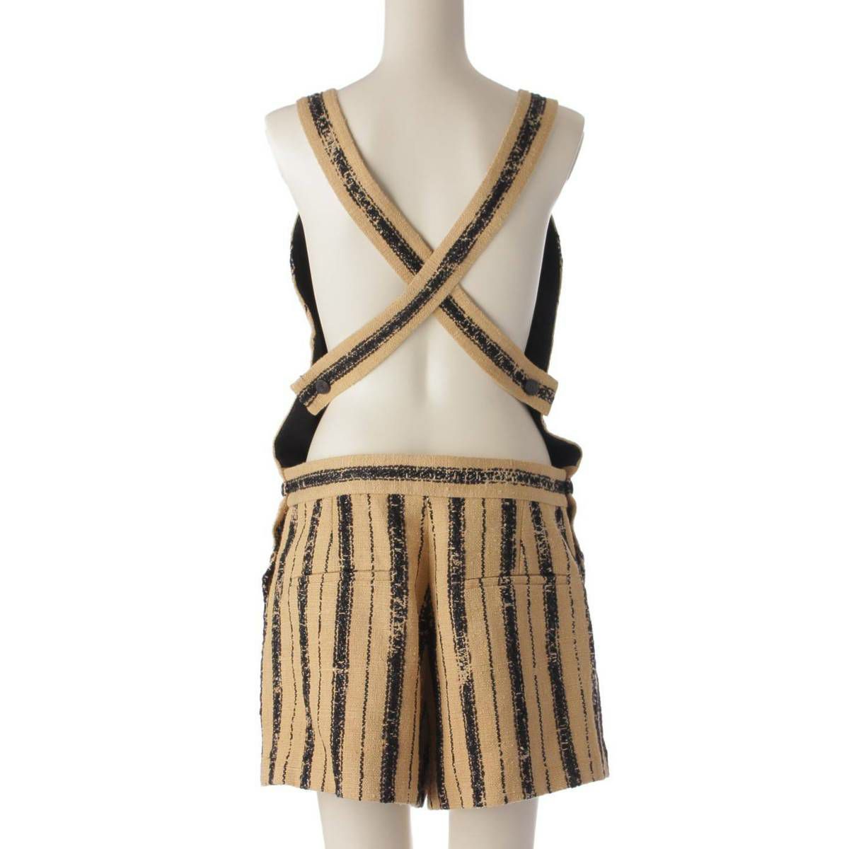 クリスチャンディオール Christian Dior 20年 シルク混 サロペット オールインワン ストライプ ベージュ×ブラック 38