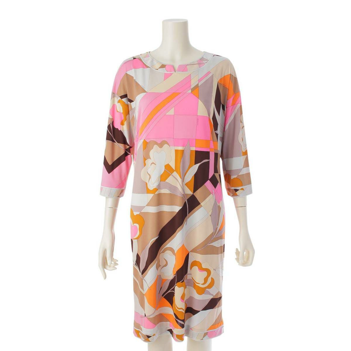 レオナール LEONARD カンカン素材 植物柄 幾何学模様 ワンピース 0340243 マルチカラー 3