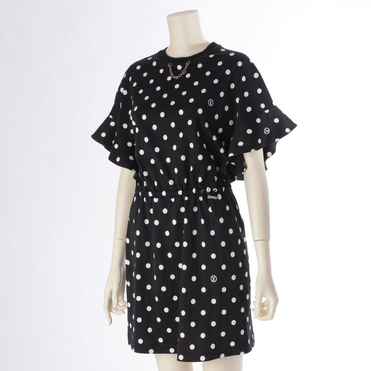 ルイヴィトン 22SS フラウンス ポルカドット ワンピース ドレス 1A9Y2A ブラック XS