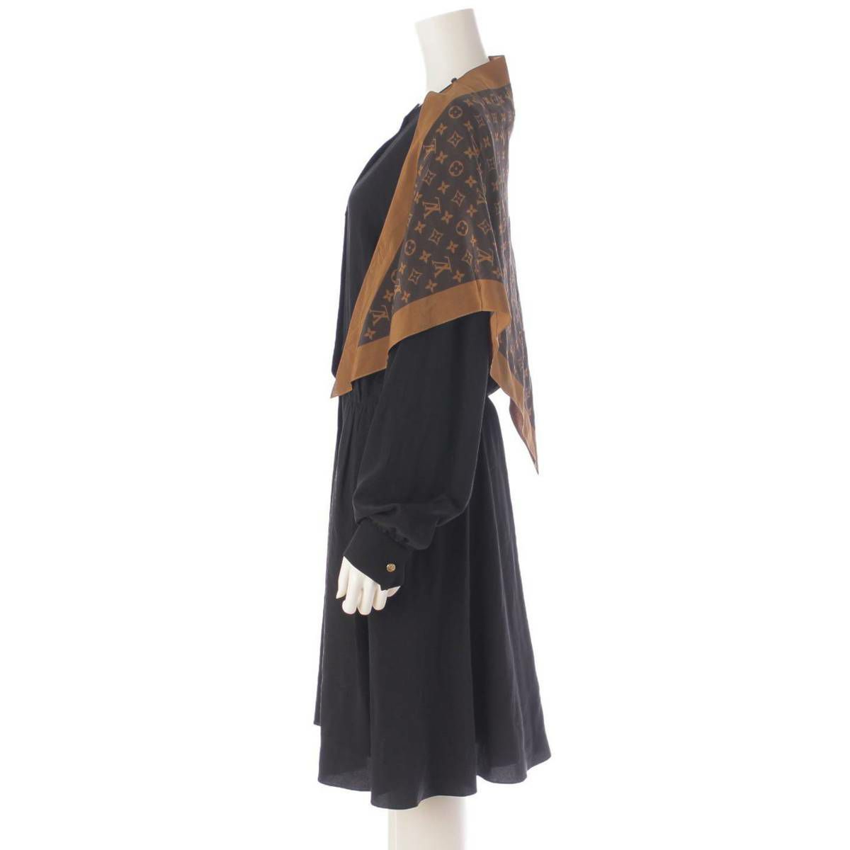 ルイヴィトン 21年 モノグラム シルク スカーフ ニーレングスドレス ワンピース ブラック 40