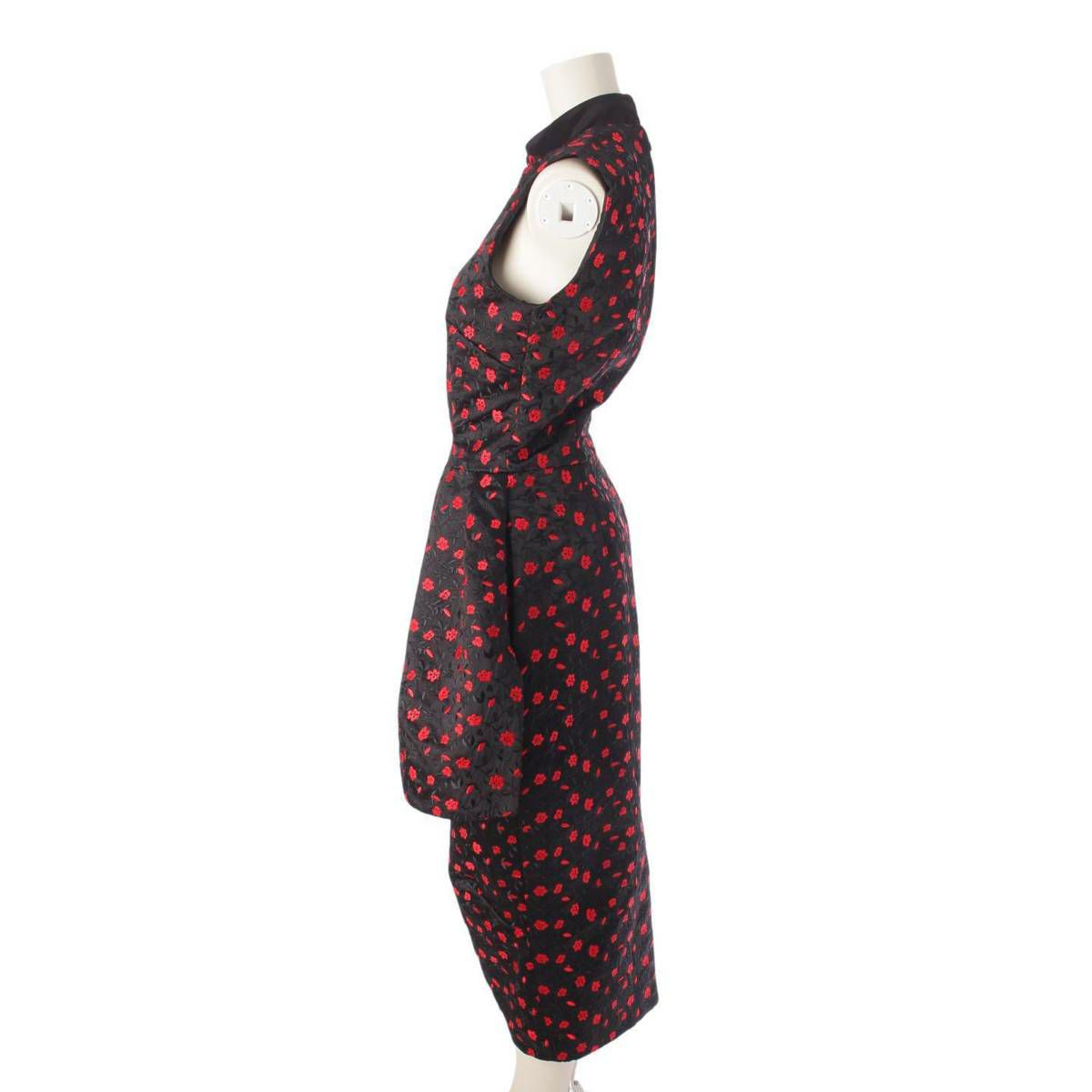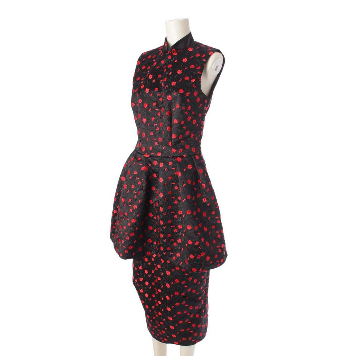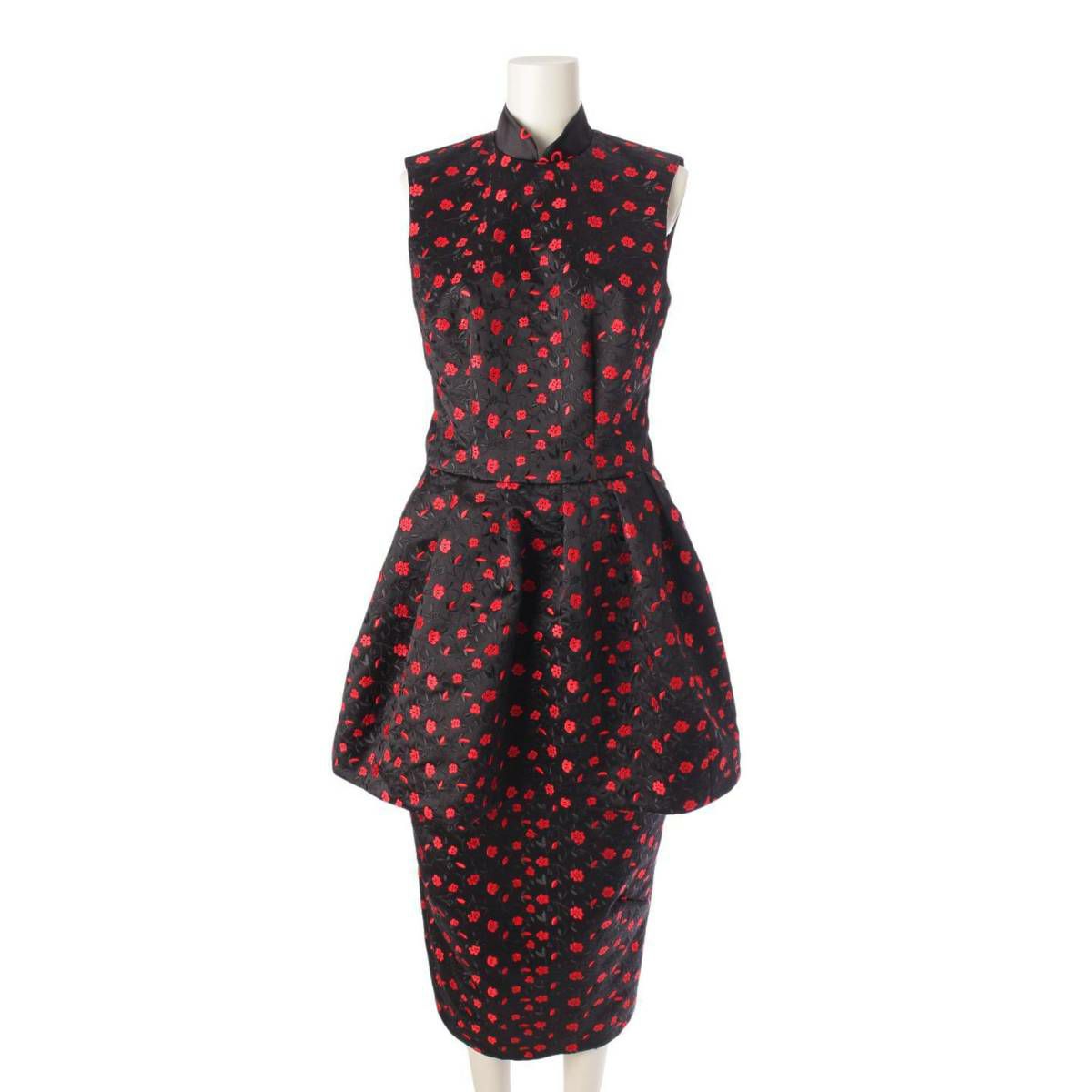 シモーネロシャ 18SS フラワー 総柄 刺繍 ワンピース ドレス ブラック×レッド UK6