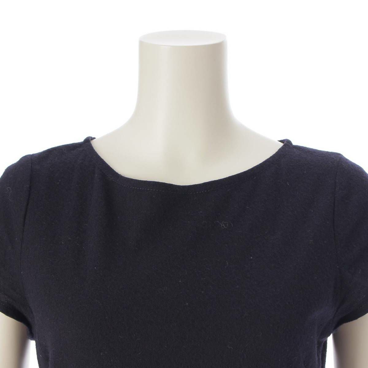 プラダ ウール クルーネック 半袖 フレア ワンピース ネイビー 42