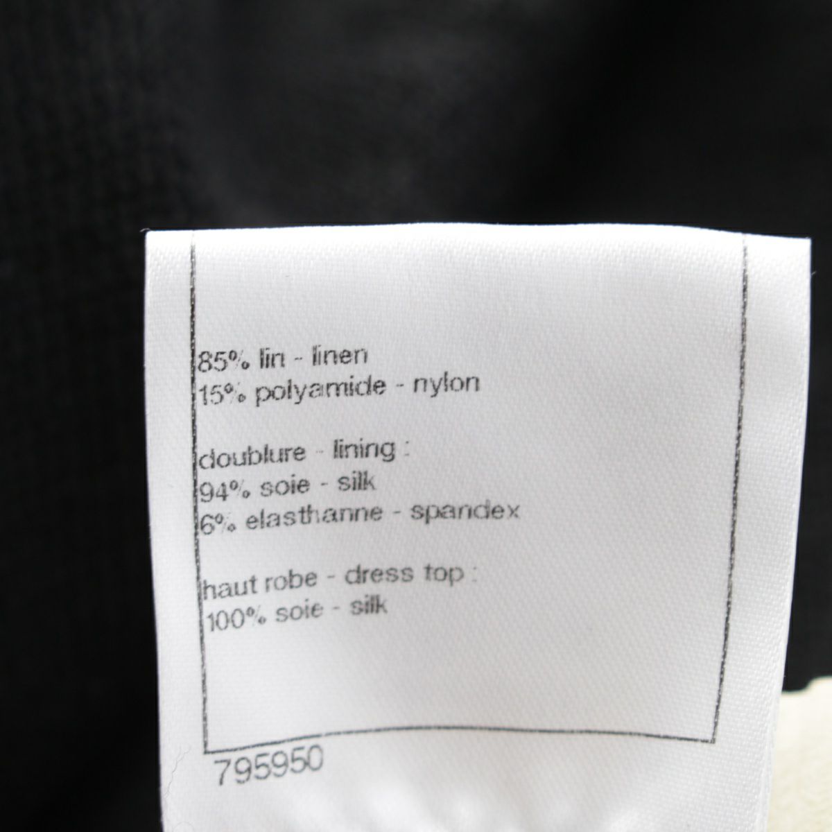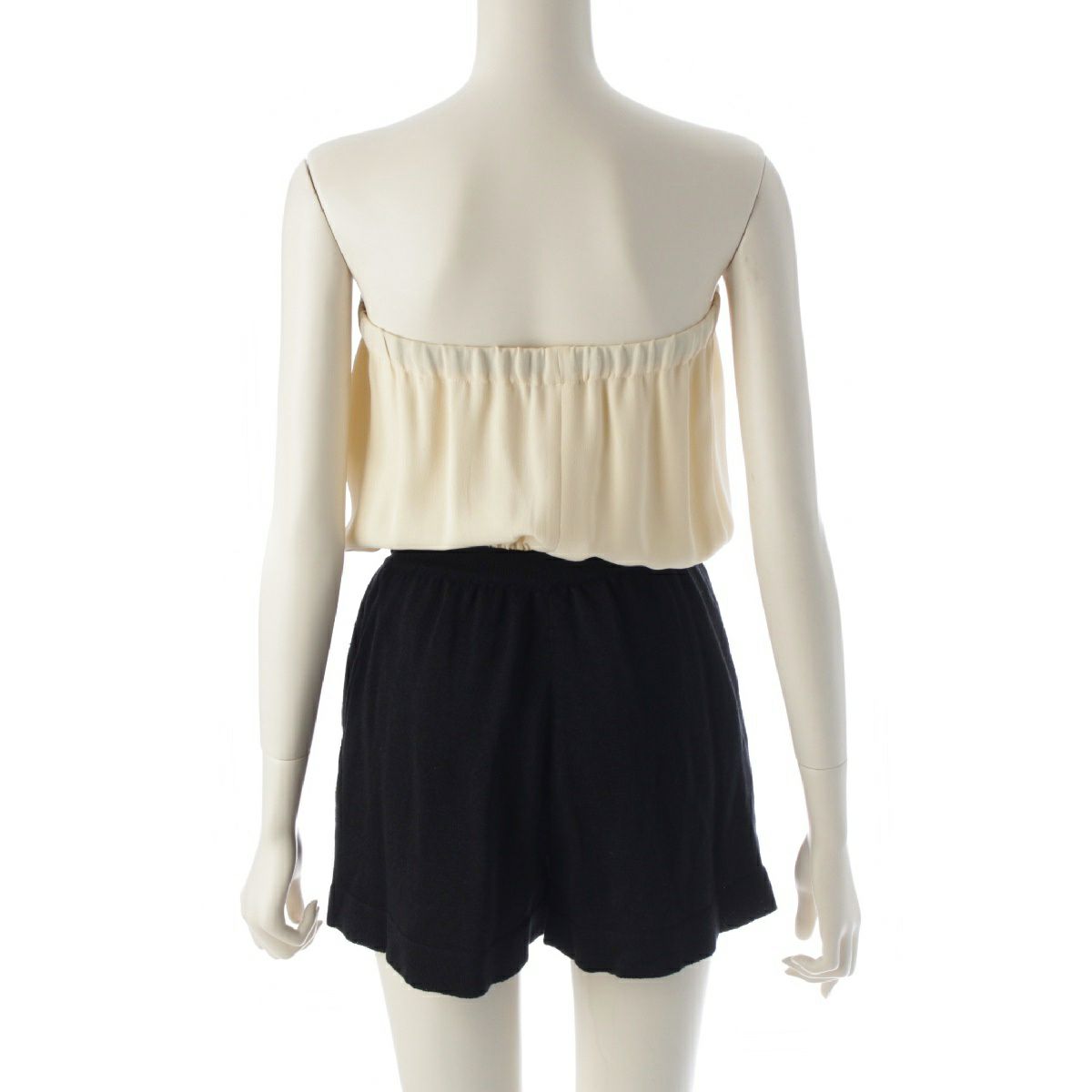 シャネル リネン ナイロン ココマーク バイカラー サロペット オールインワン P40728 ブラック×アイボリー 34