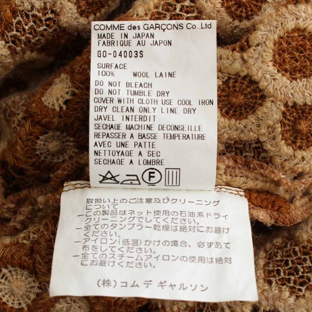 他の画像を見る COMME des GARCONS コムデギャルソン AD1999 ウール 総レース フラワー 刺繍 デザイン ノースリーブ ワンピース GO-04003S ブラウン系 S 在庫切れ お気に入りに登録する 当店特別価格 ¥ 26,400 税込 円 24,000円