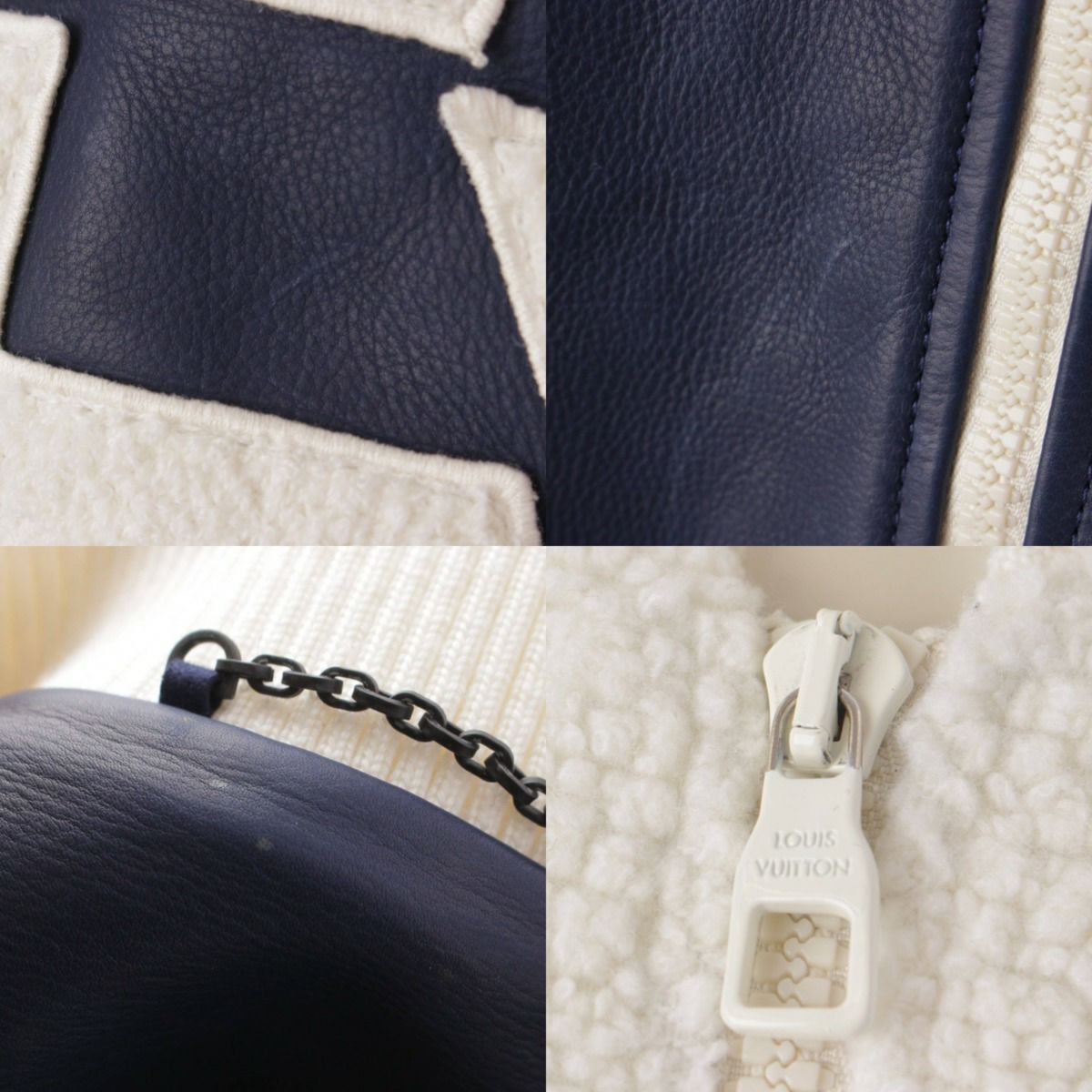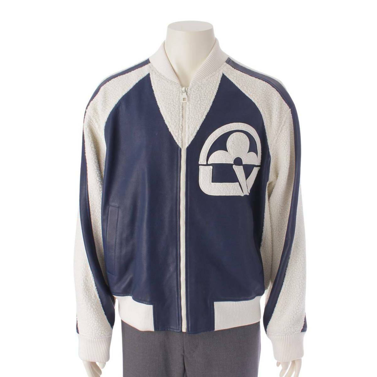 ルイヴィトン ミックスレザー フラワー テディ ブルゾン ジャケット アウター 1ABOCW ネイビー 48