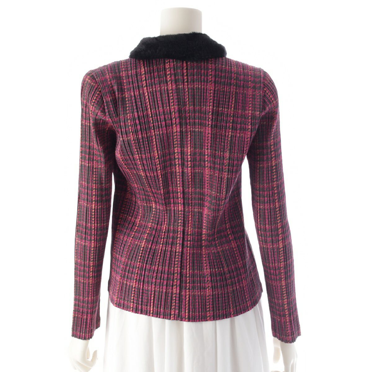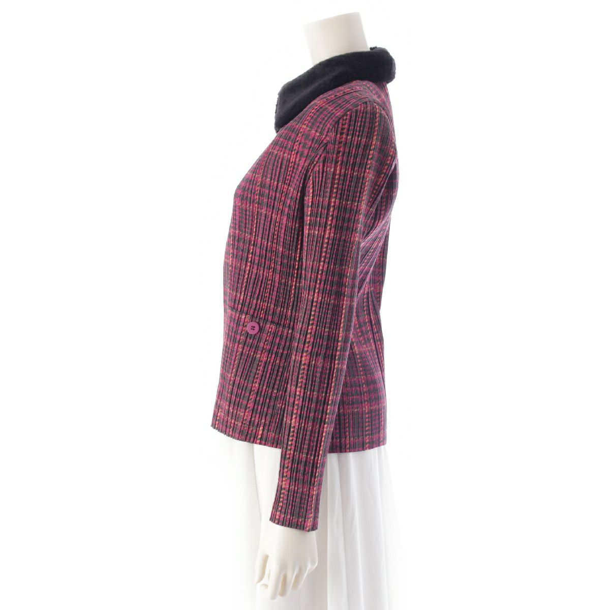 プリーツプリーズ イッセイミヤケ ライトアウター ファー切替 チェック ジップアップ アウター ジャケット PP83-JC454 ピンク 4