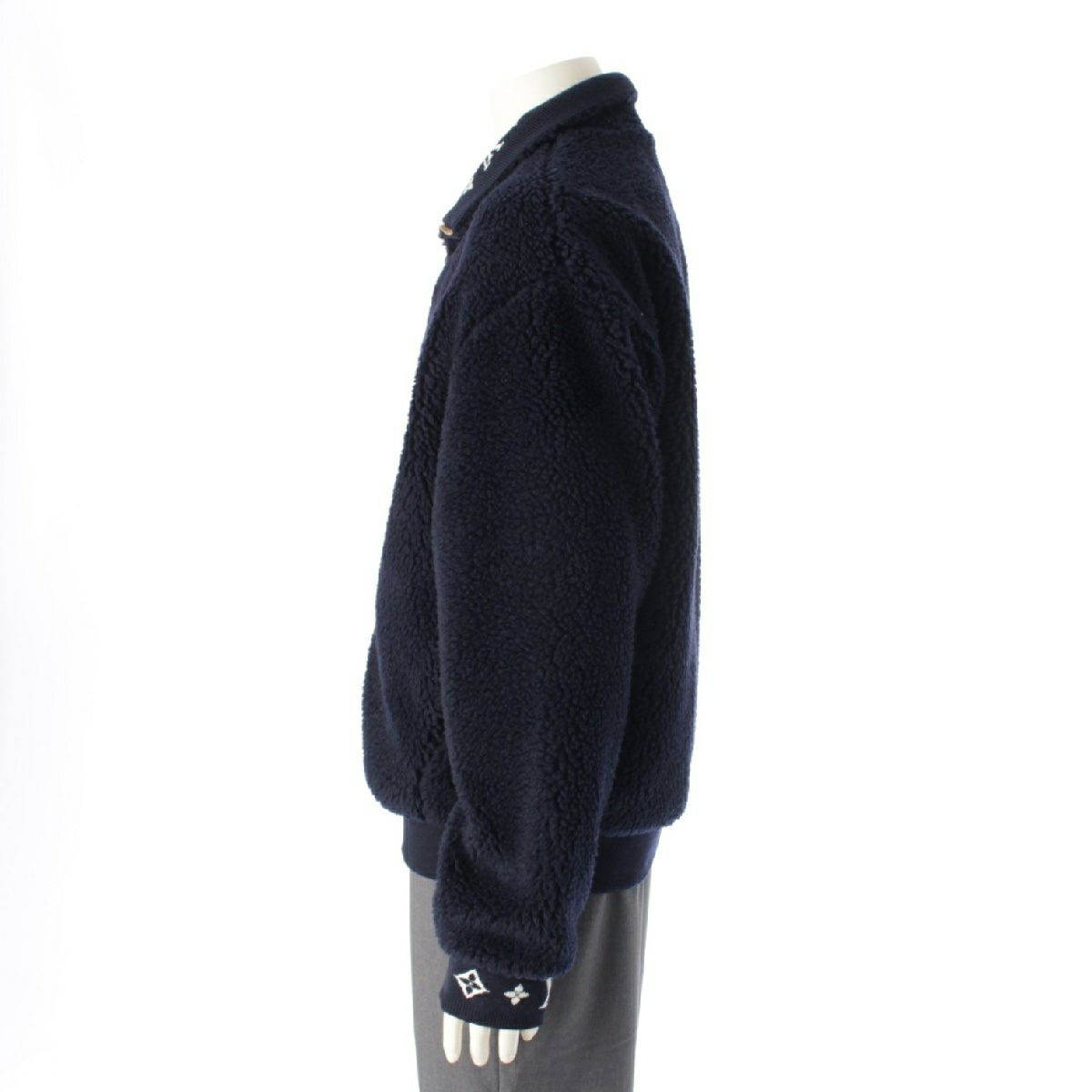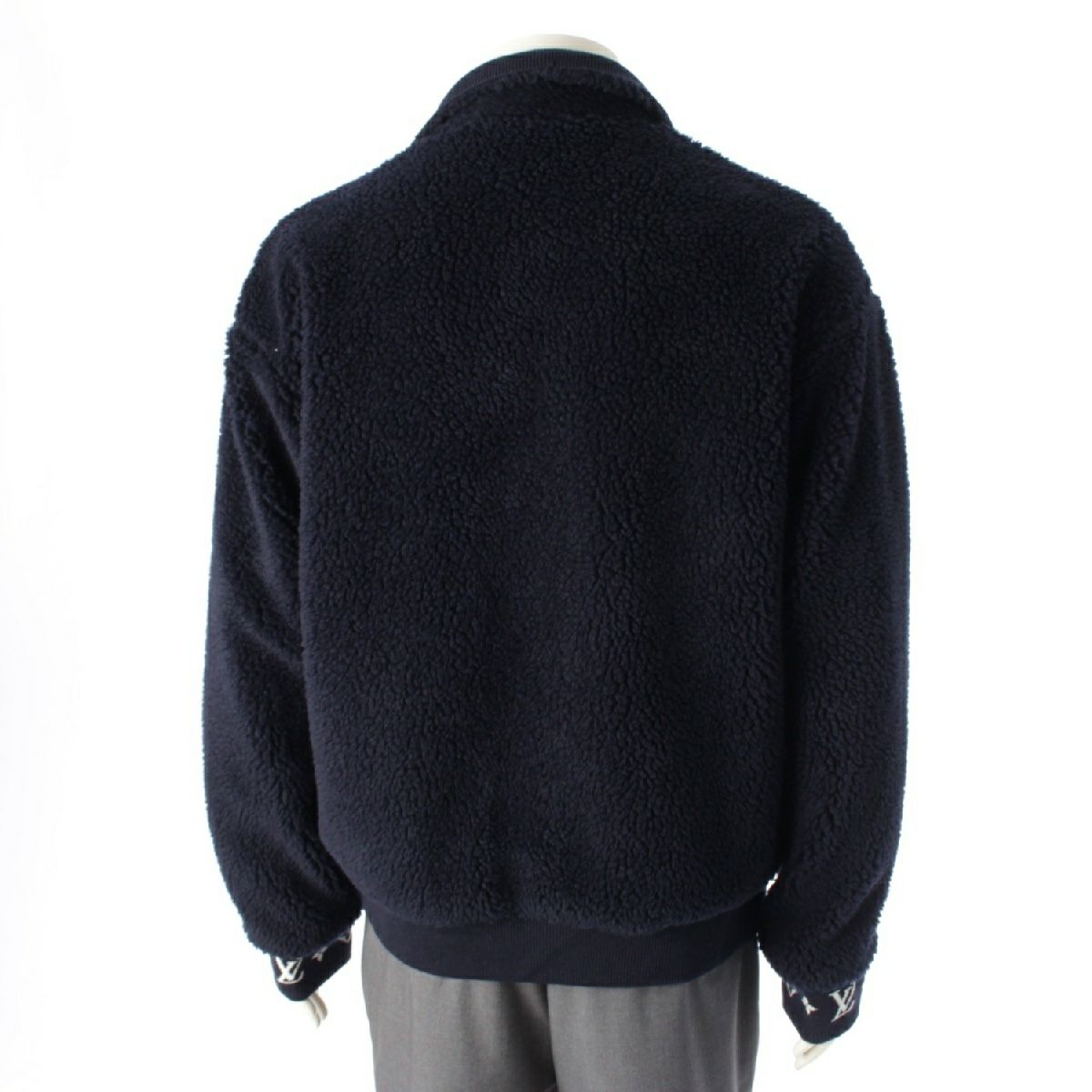 ルイヴィトン 25年 モノグラム ロゴ レザーパッチ フリース ブルゾン ジャケット アウター 1AGLXO ネイビー L