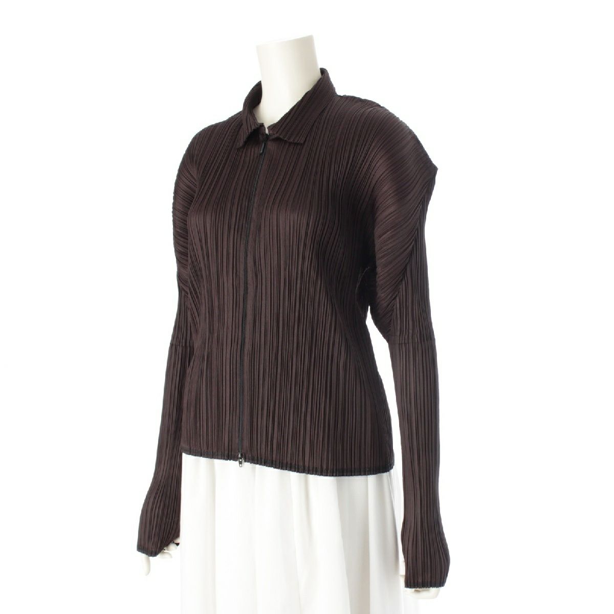 プリーツプリーズ イッセイミヤケ ポリエステル ジップアップ ブルゾン ジャケット アウター カーディガン トップス PP21-JC306 ダークブラウン 3
