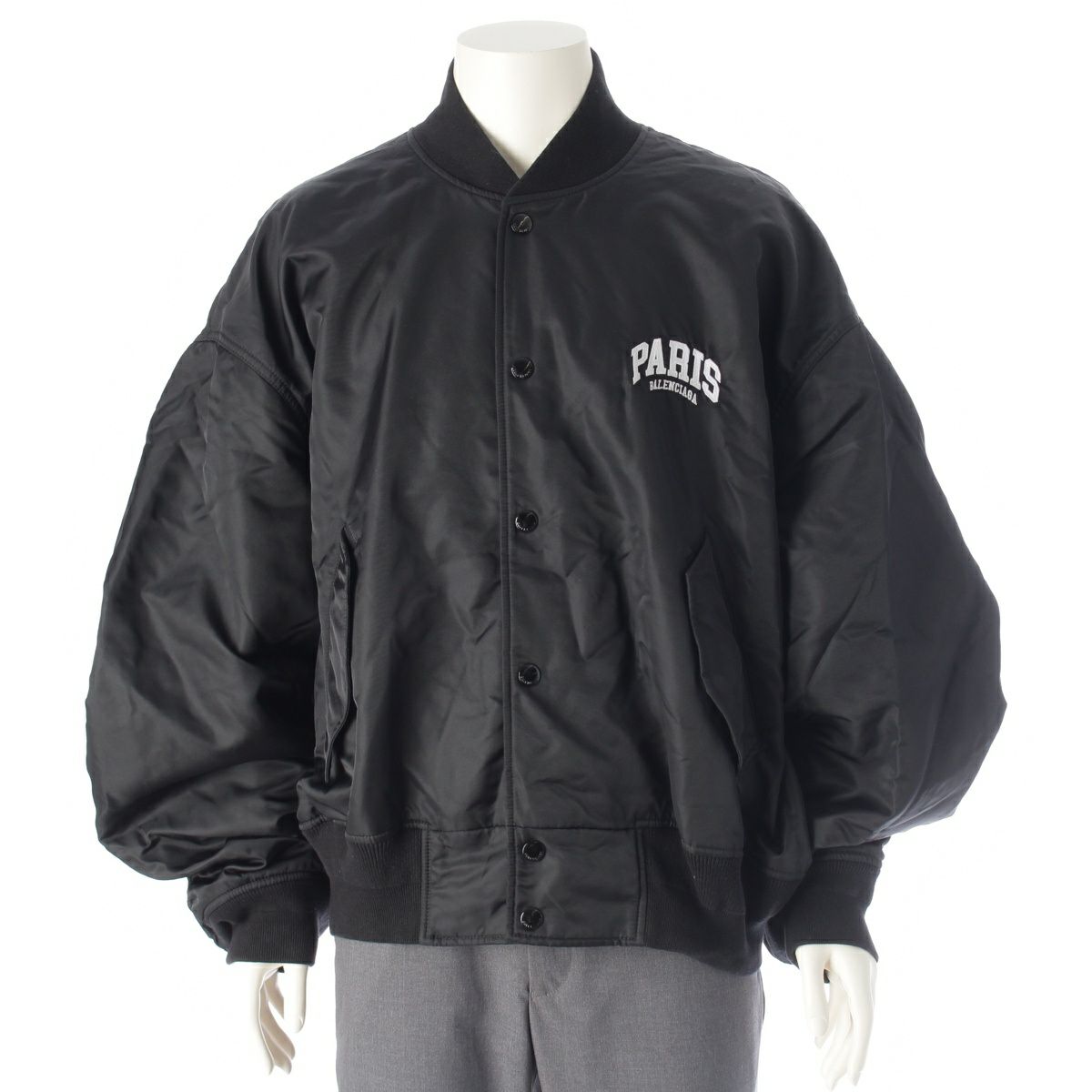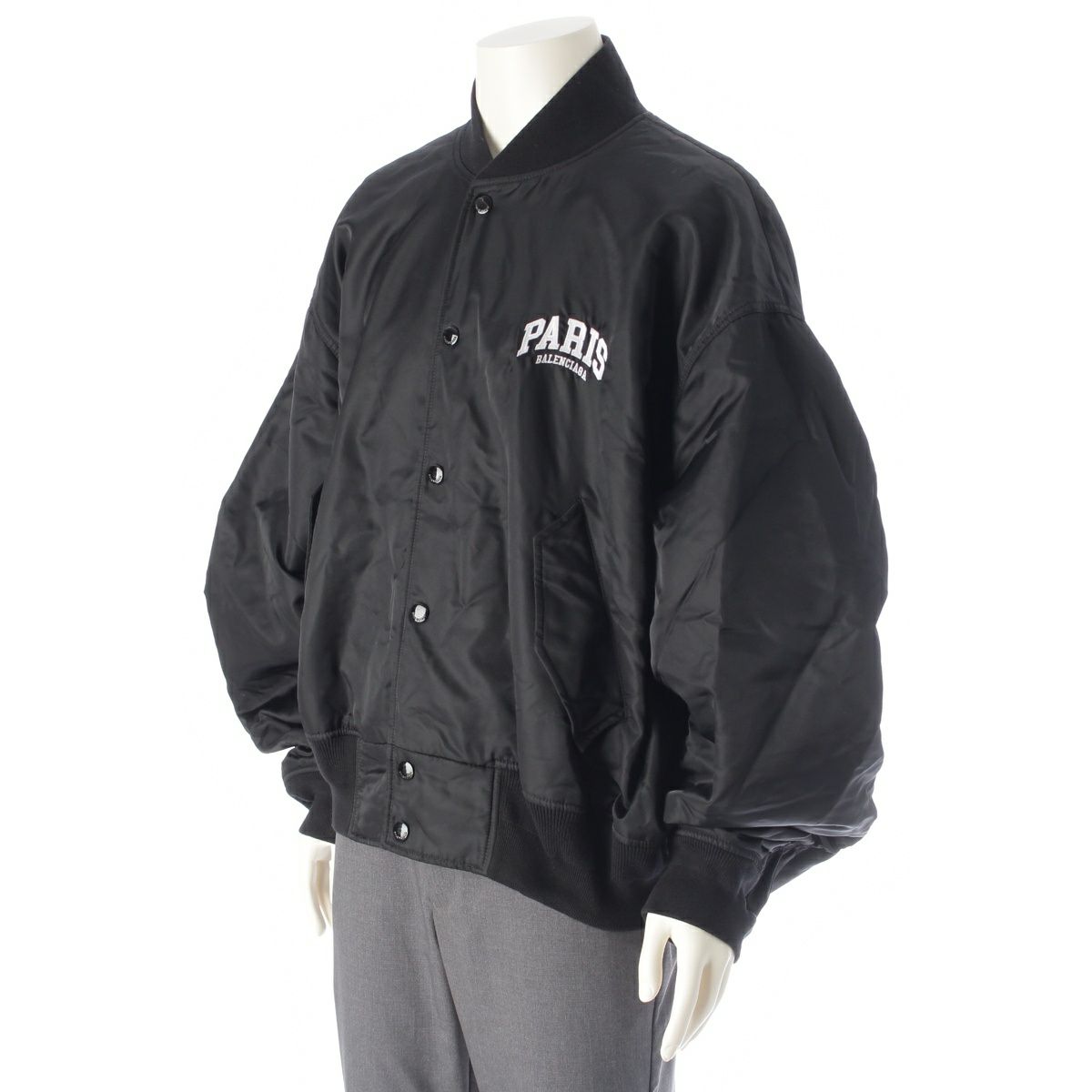 バレンシアガ 23年 フロントスナップ ロゴ カレッジジャケット ブルゾン ボンバージャケット 768924 ブラック XS