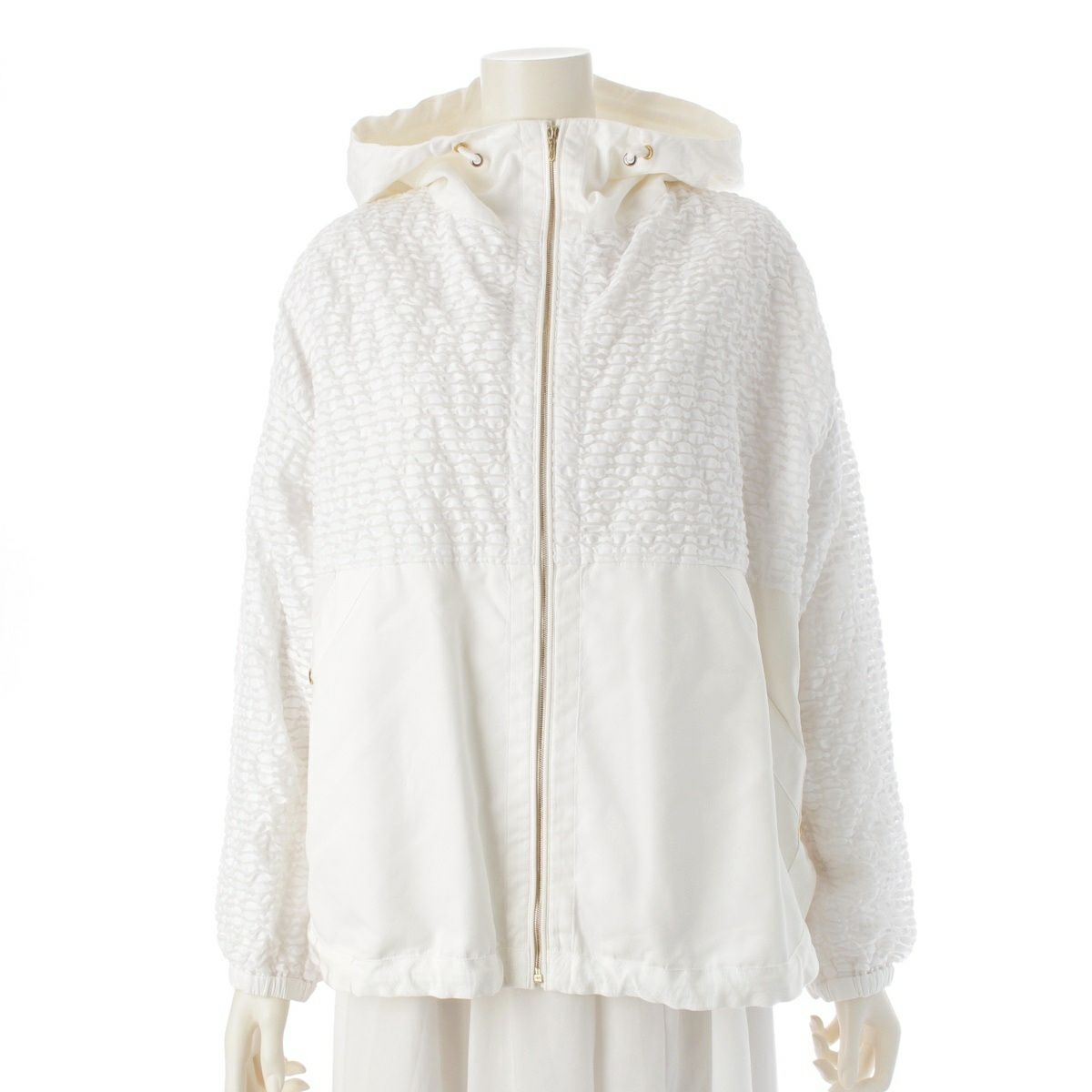 ドゥロワー 22SS ジャガード切替 金ボタン フーデッド ブルゾン 6522-299-0709 ホワイト