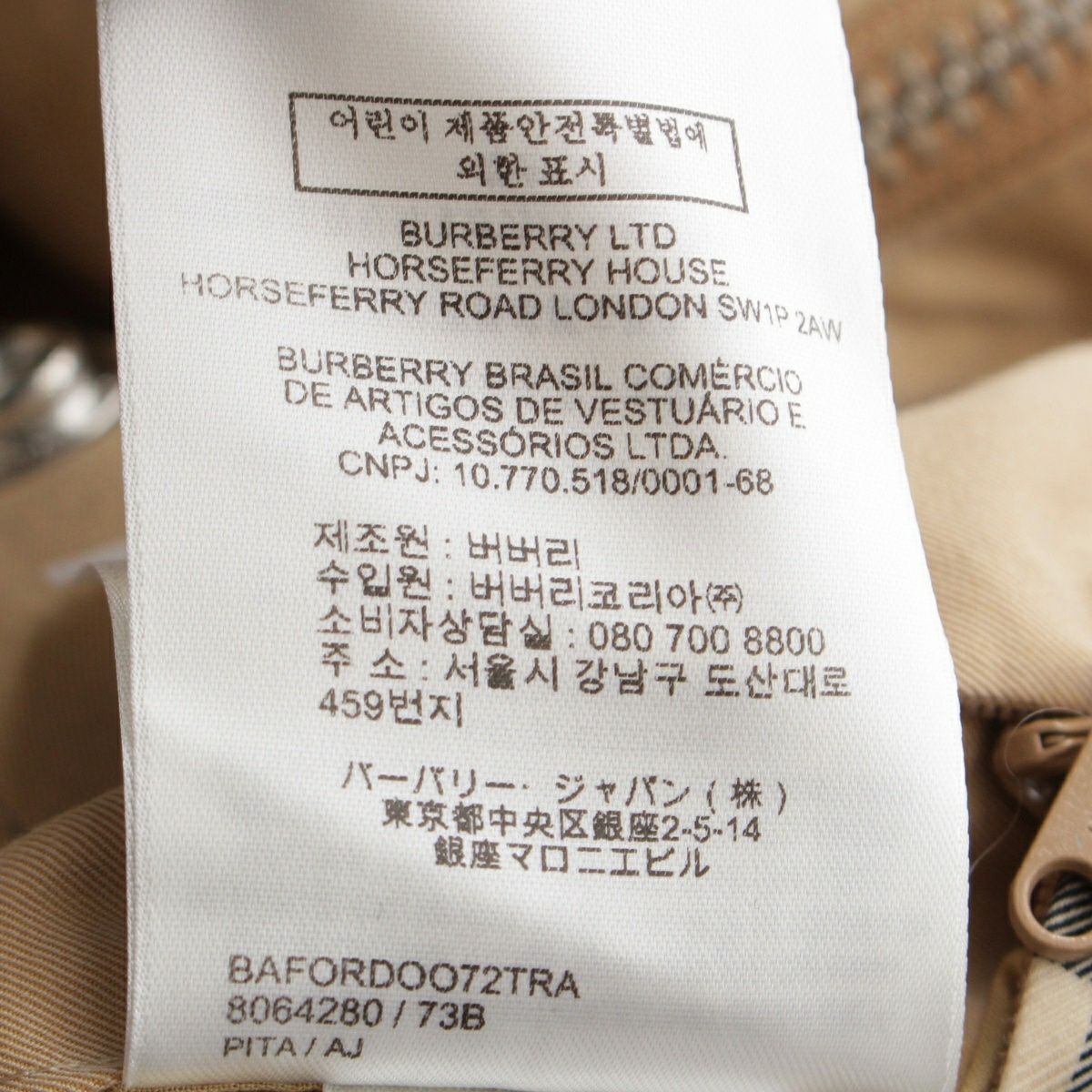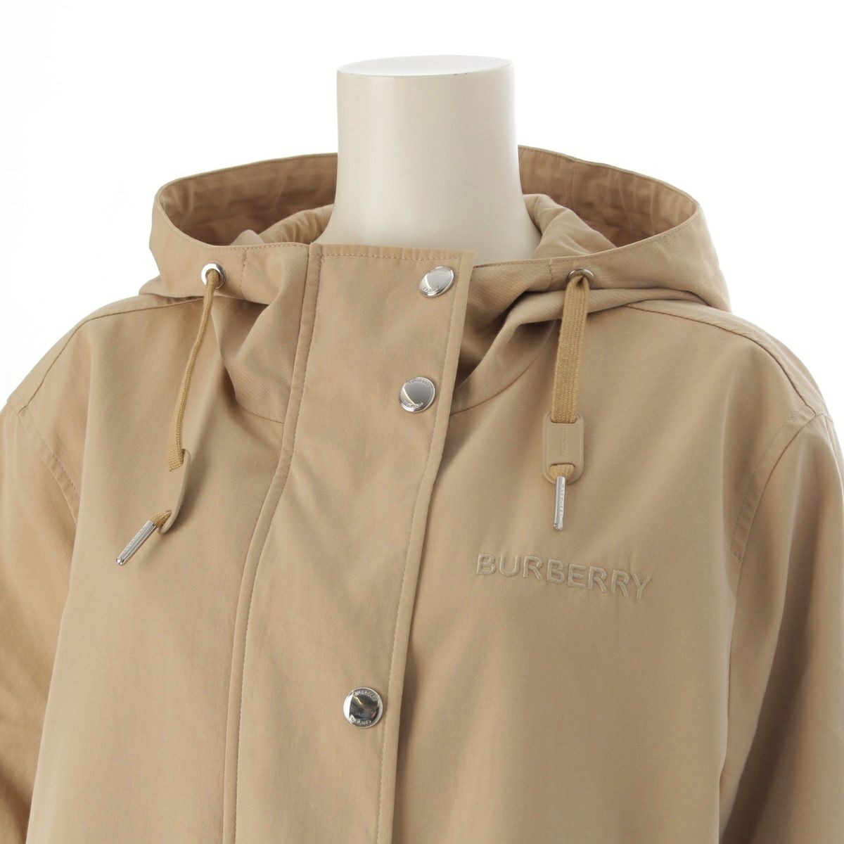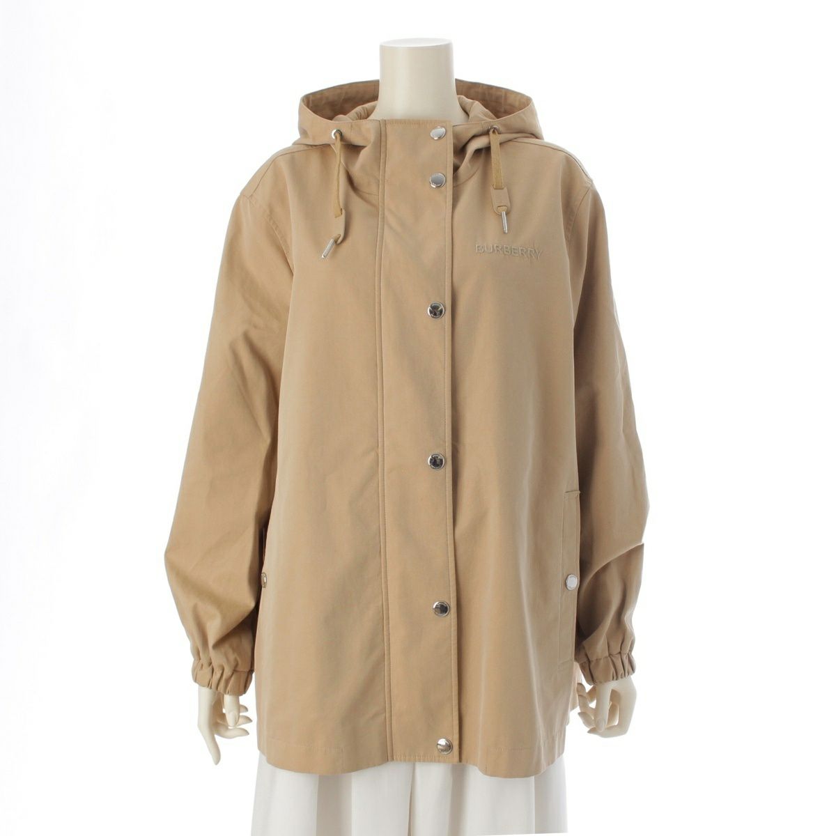 バーバリー コットン ロゴ刺繍 フーディー コート アウター 裏地チェック柄 8064280 ベージュ 38