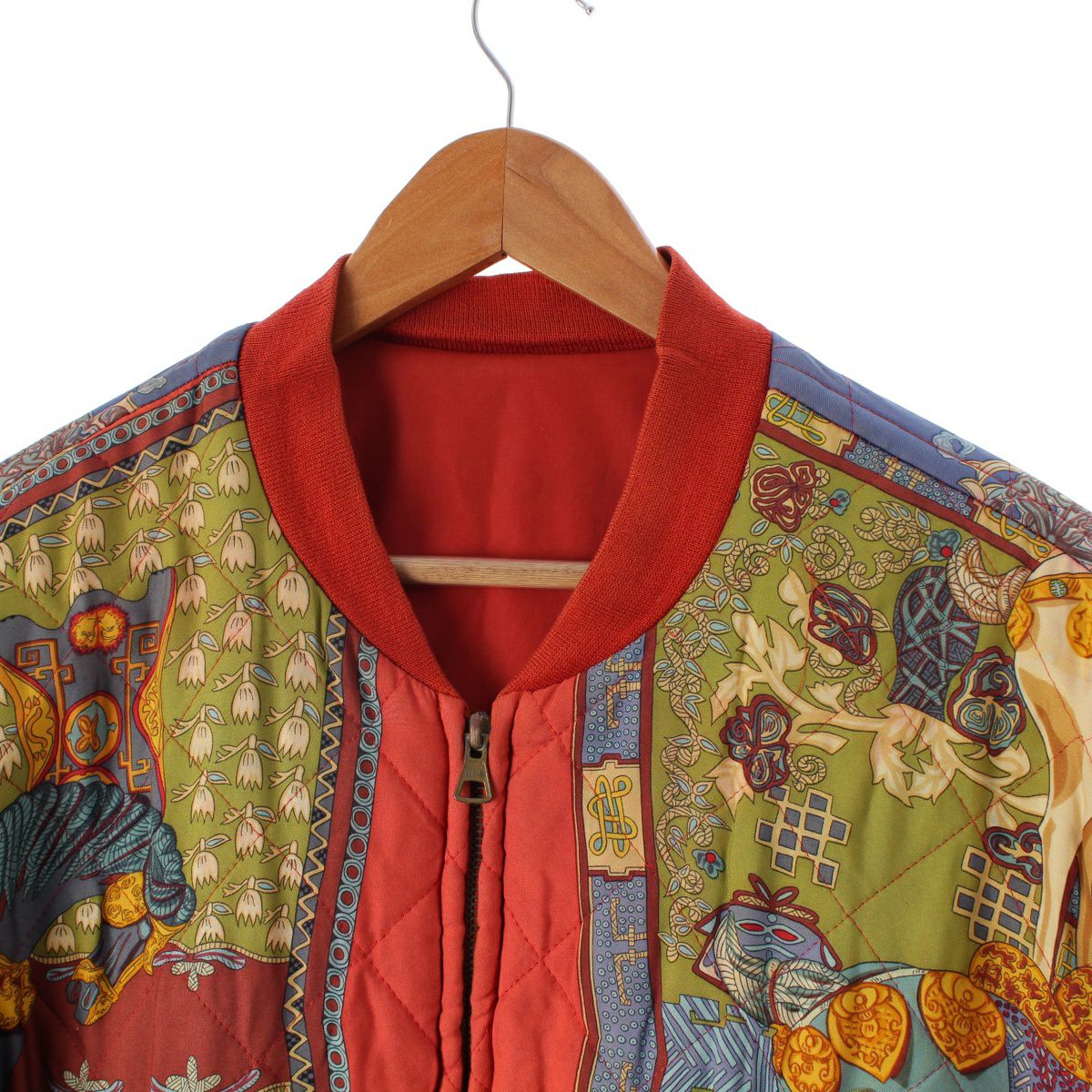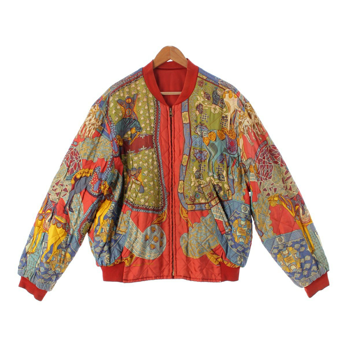 エルメス ART DES STEPPES シルク ウール ステップ美術 リバーシブル ブルゾン レッド系マルチカラー 48
