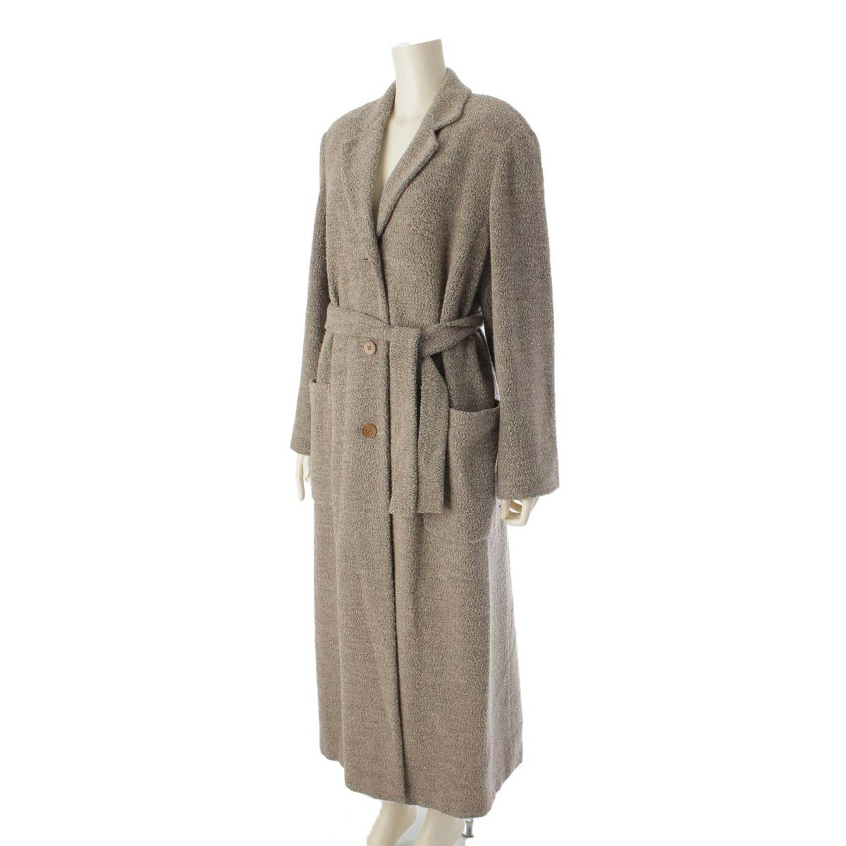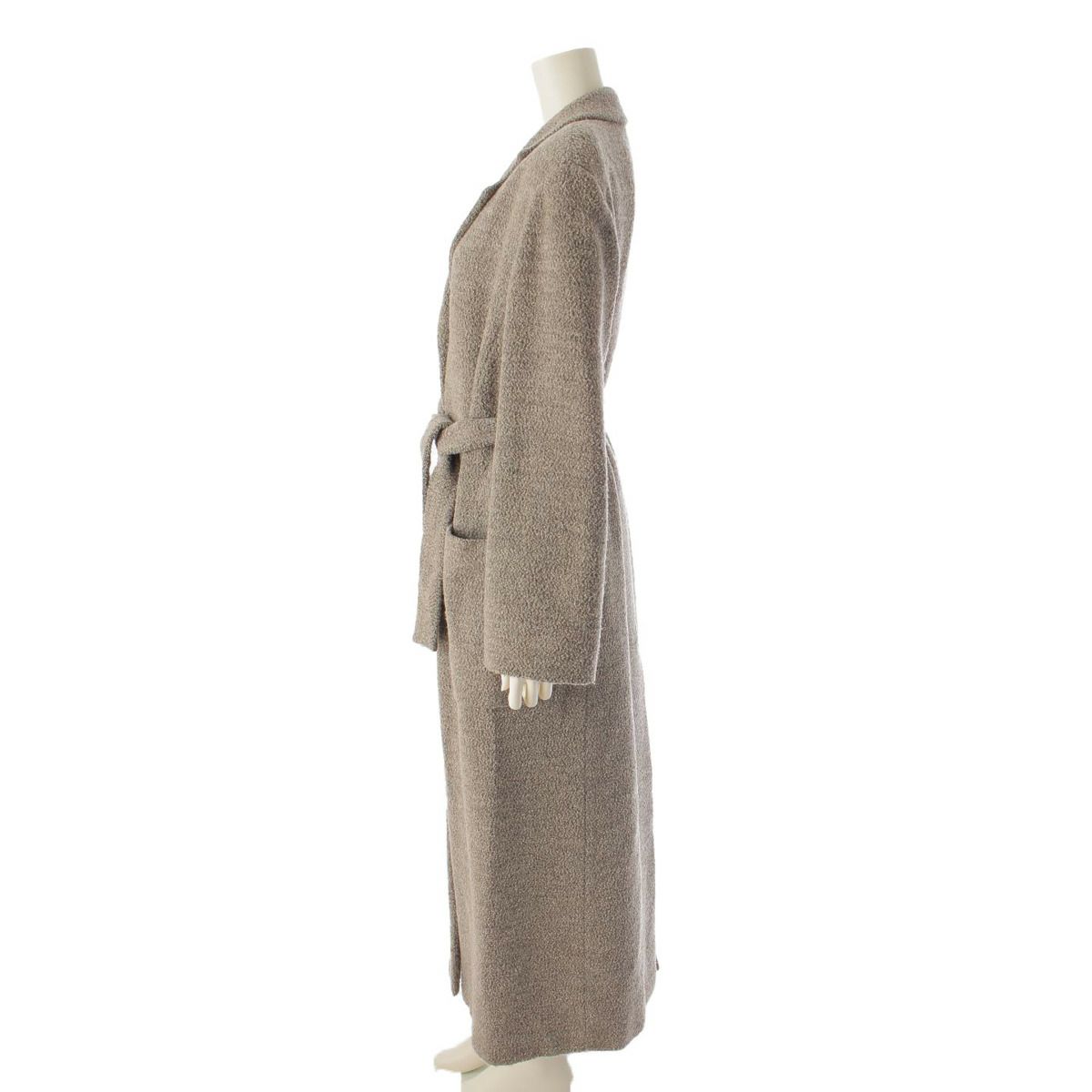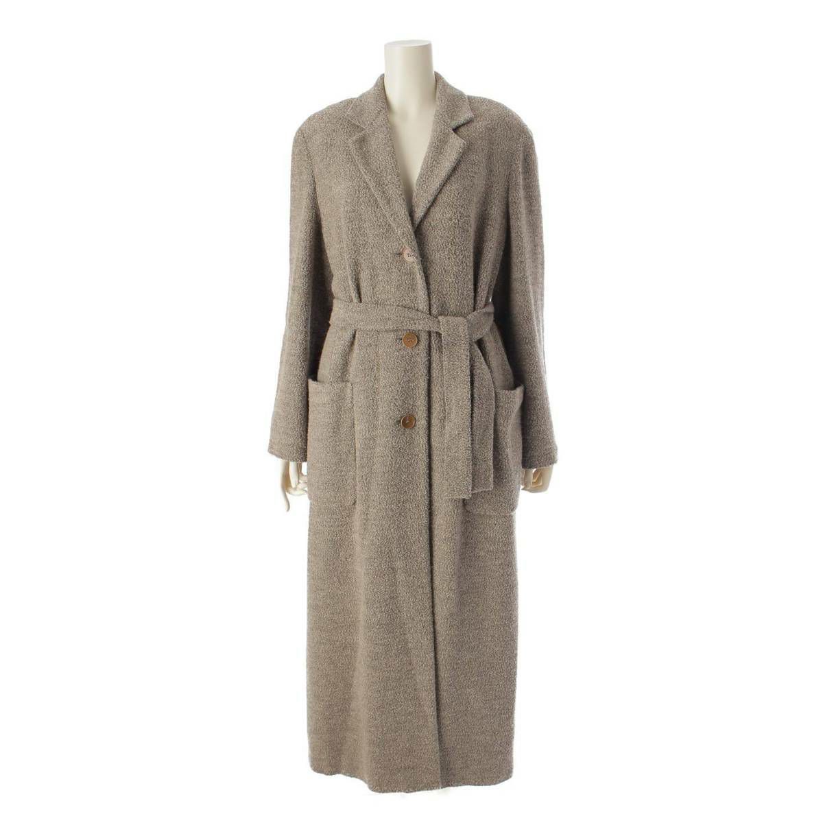 マックスマーラ Max mara パイル生地 ベルト付 肩パッド ロングコート アウター グレー 42