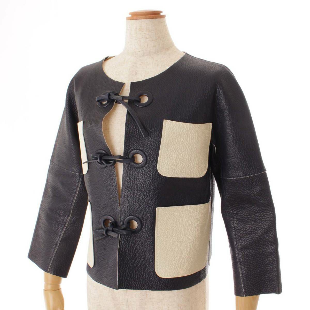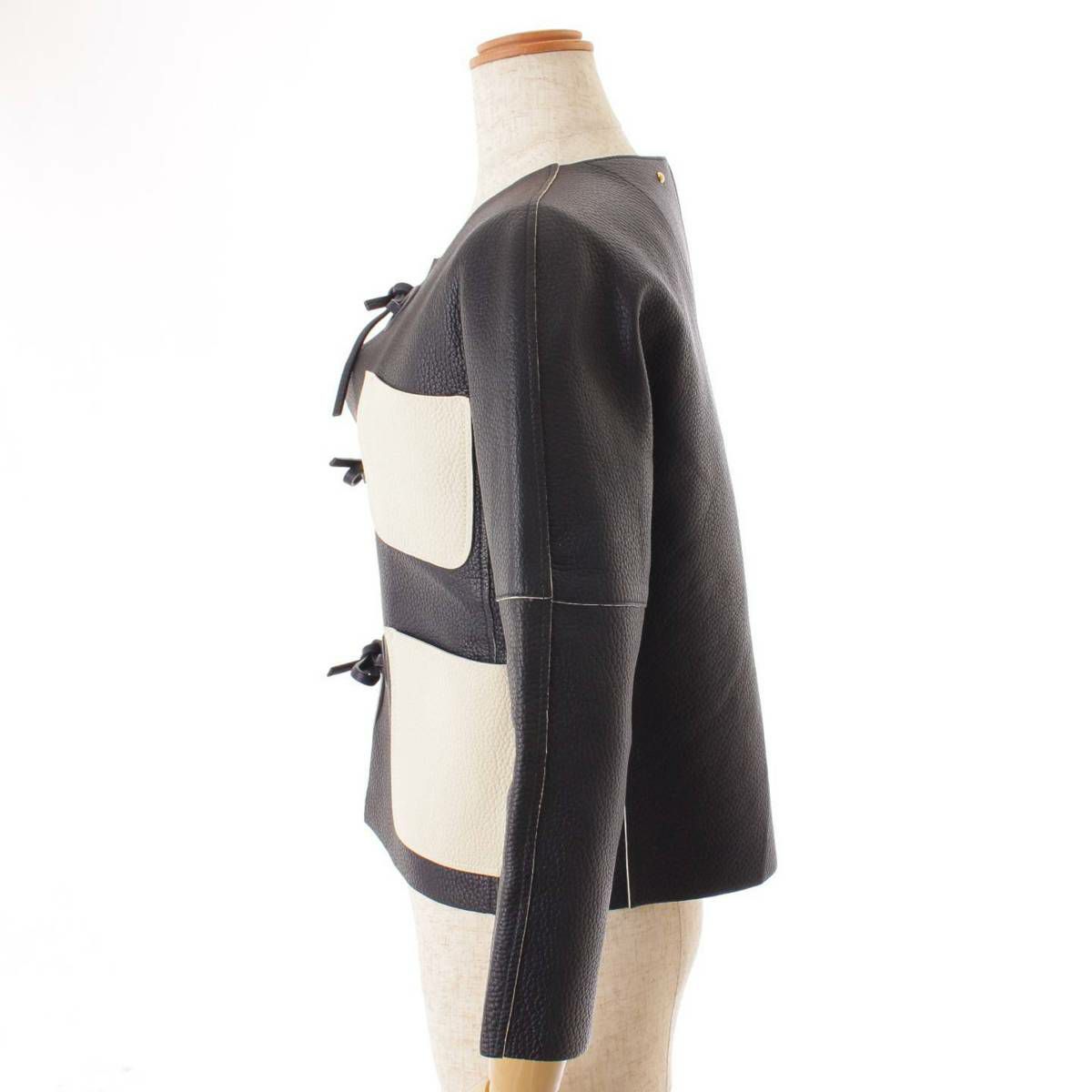 ルイヴィトン レザー ノーカラー ジャケット ネイビー×ホワイト