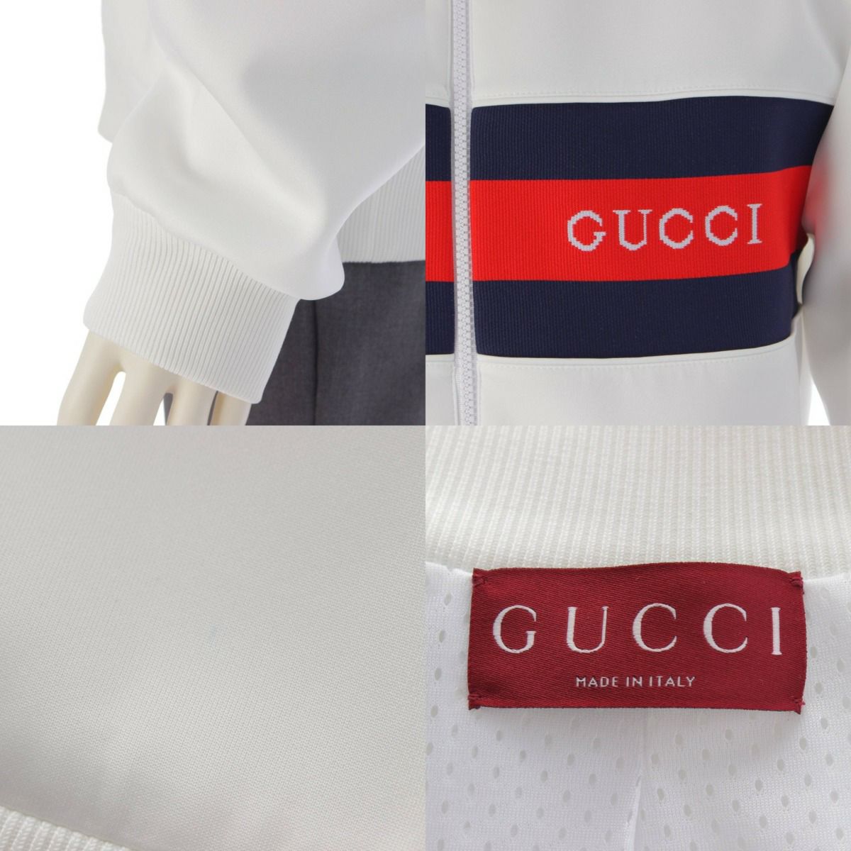 グッチ 24年 シェリーライン ネオプレンロゴ ジップアップ ジャケット ブルゾン アウター ホワイト