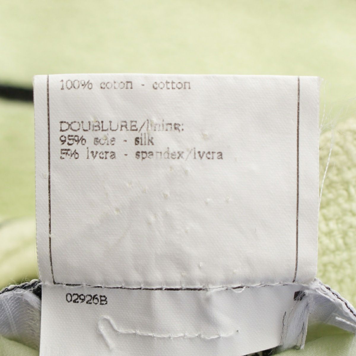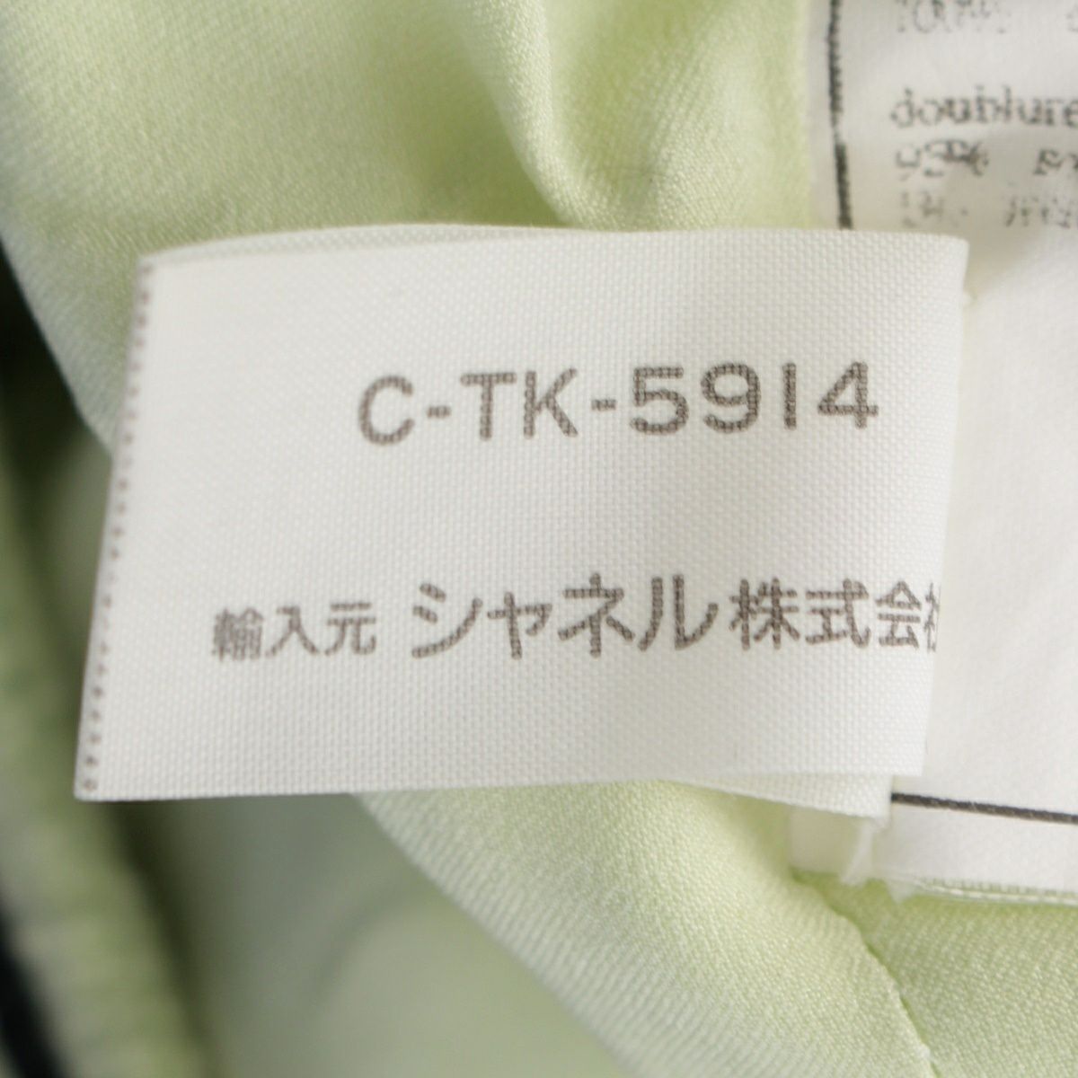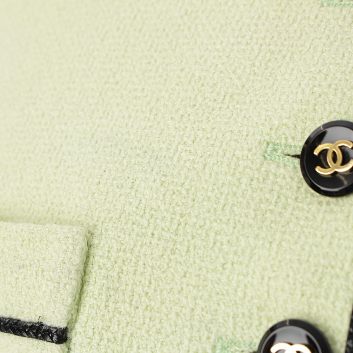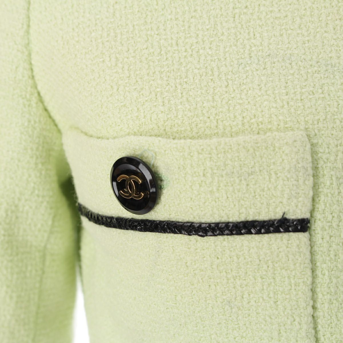 シャネル 95P コットン シルク ヴィンテージ クロップド ココボタン ノーカラージャケット トップス ライトグリーン 36