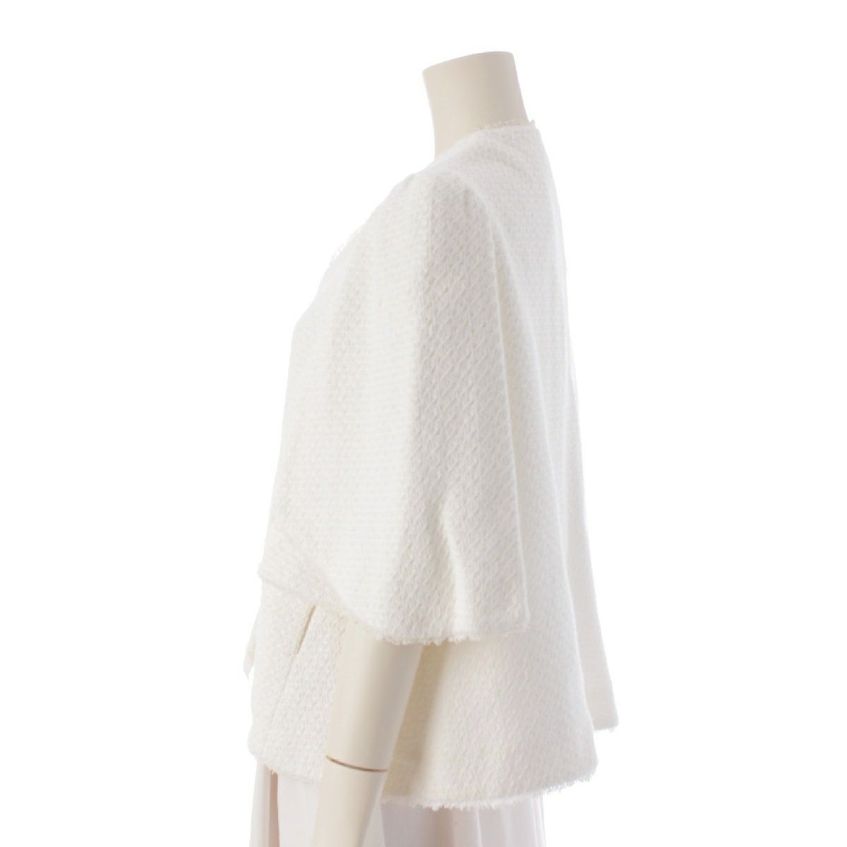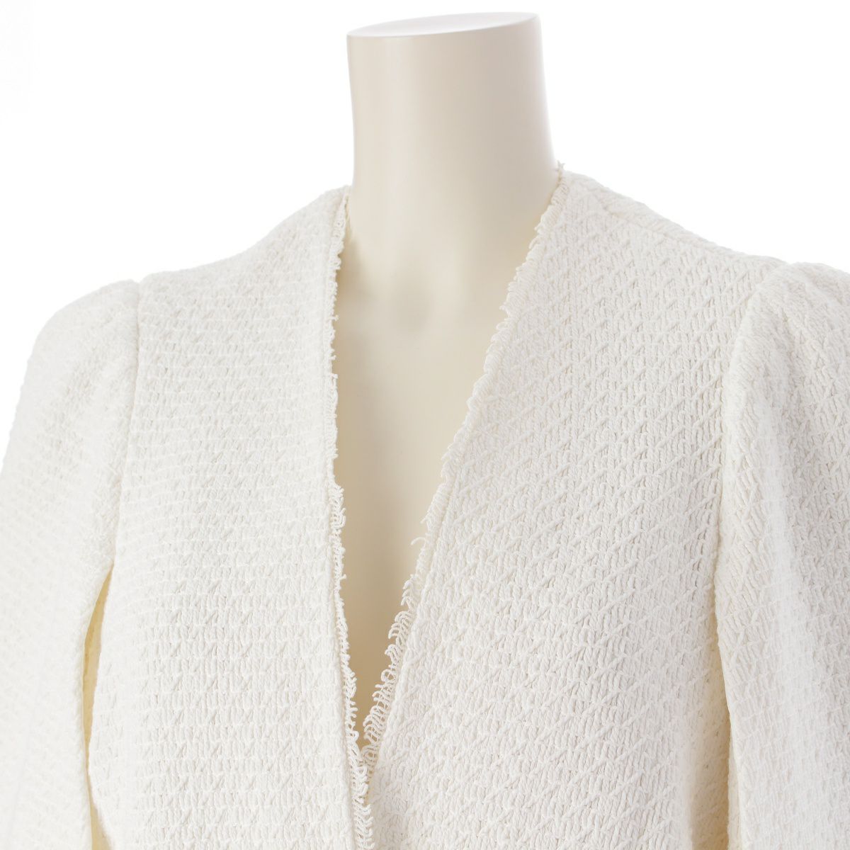 ドゥロワー コットン シルク フリンジニット ノーカラージャケット 6522-299-0972 ホワイト 36