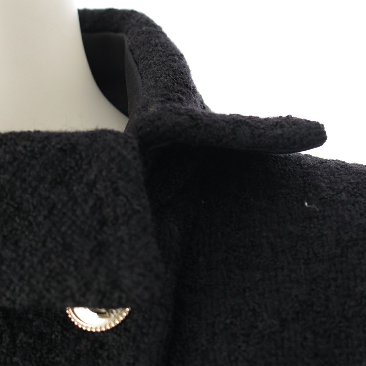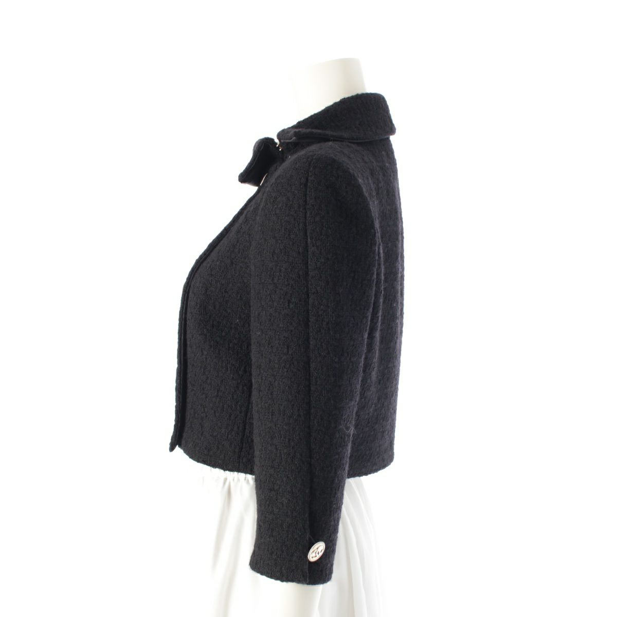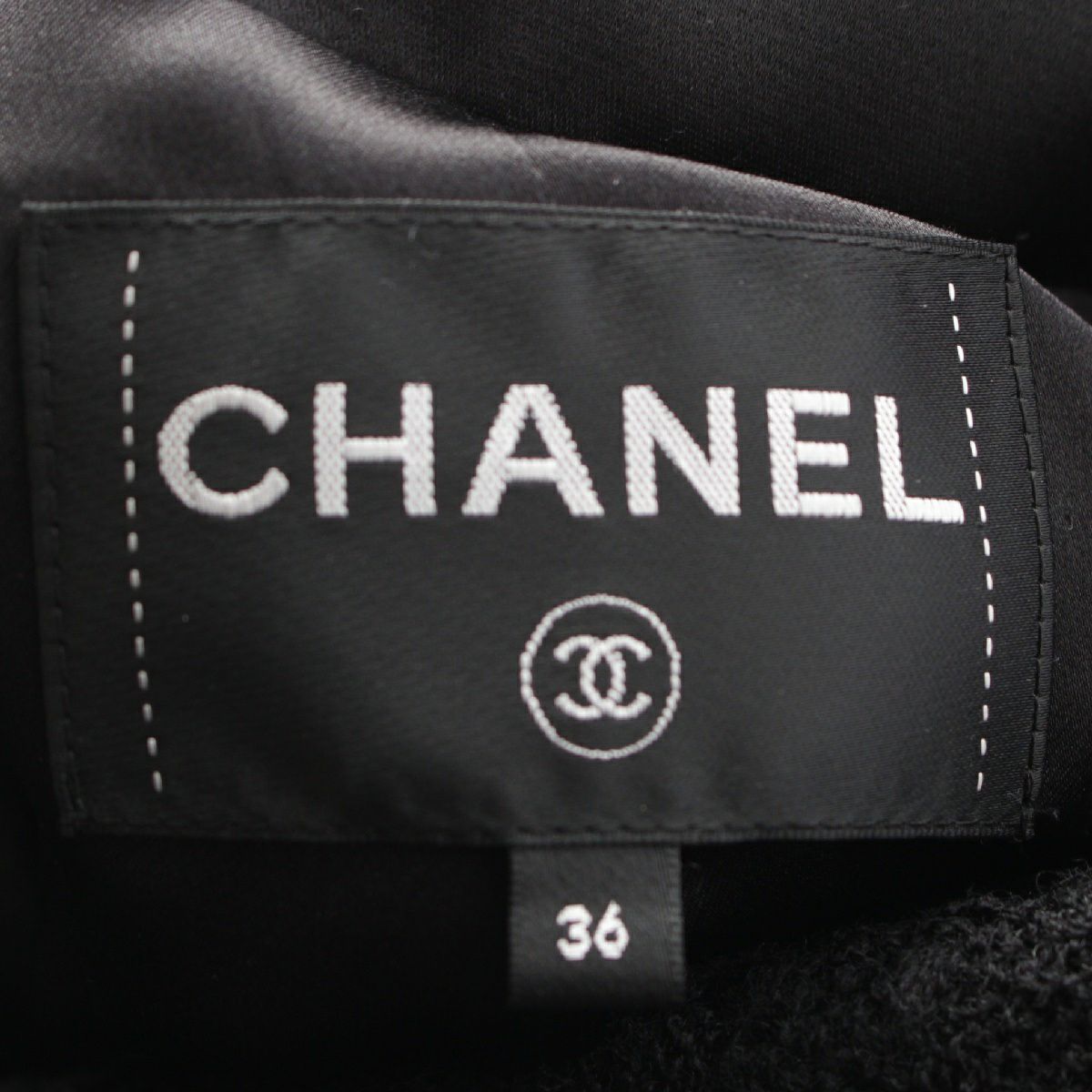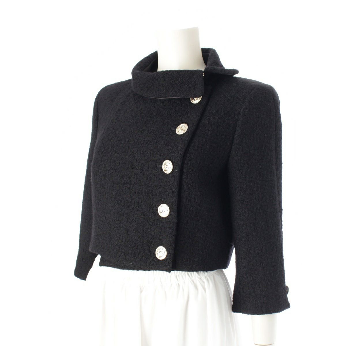 シャネル 20A ウール ココボタン 裾チェーン ショート丈 ツイード ジャケット P64616 ブラック 36