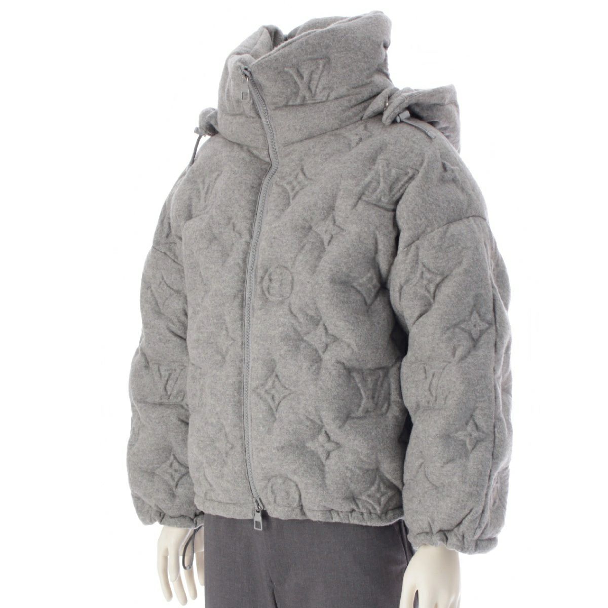 ルイヴィトン 19AW カシミヤ×シルク モノグラム ボーイフッド パフ ジャケット アウター HHK72EUY5 グレー 48