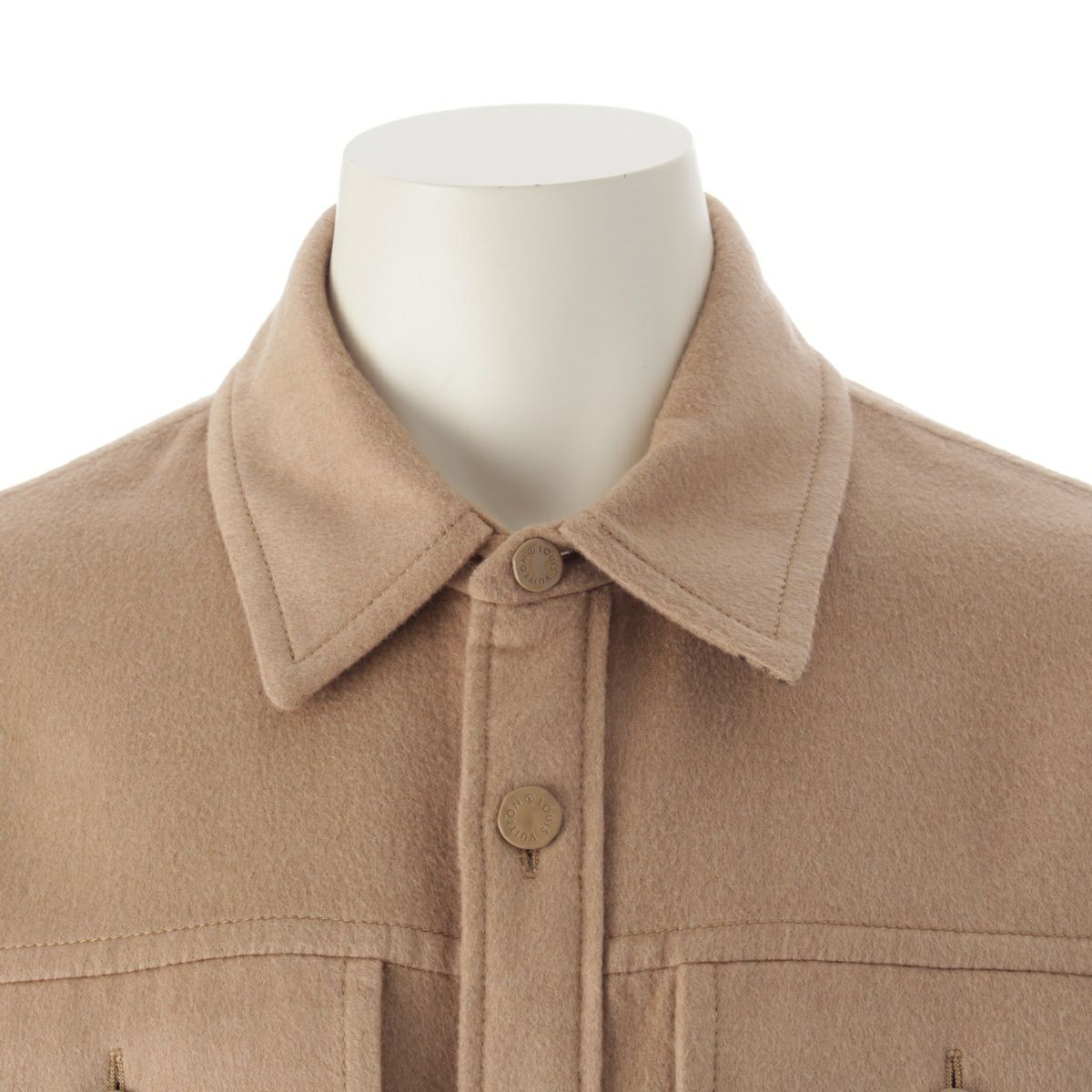ルイヴィトン 24SS カシミヤ シルク ダブルフェイス オーバーサイズ 裏地モノグラム ジャケット シャツ トップス HQB42E ベージュ S