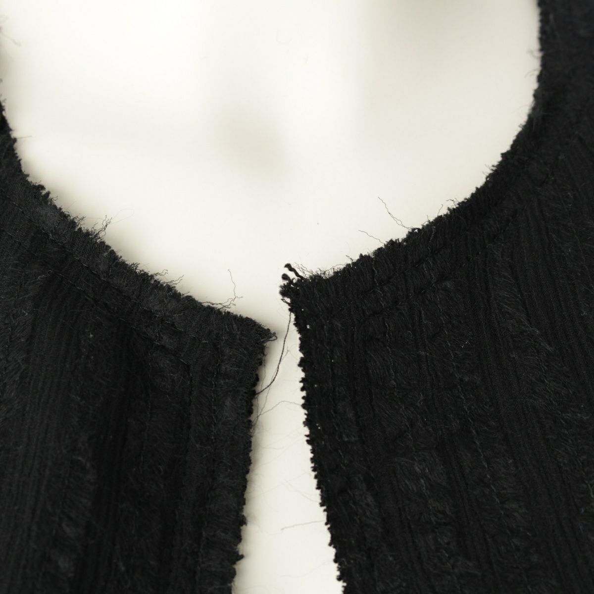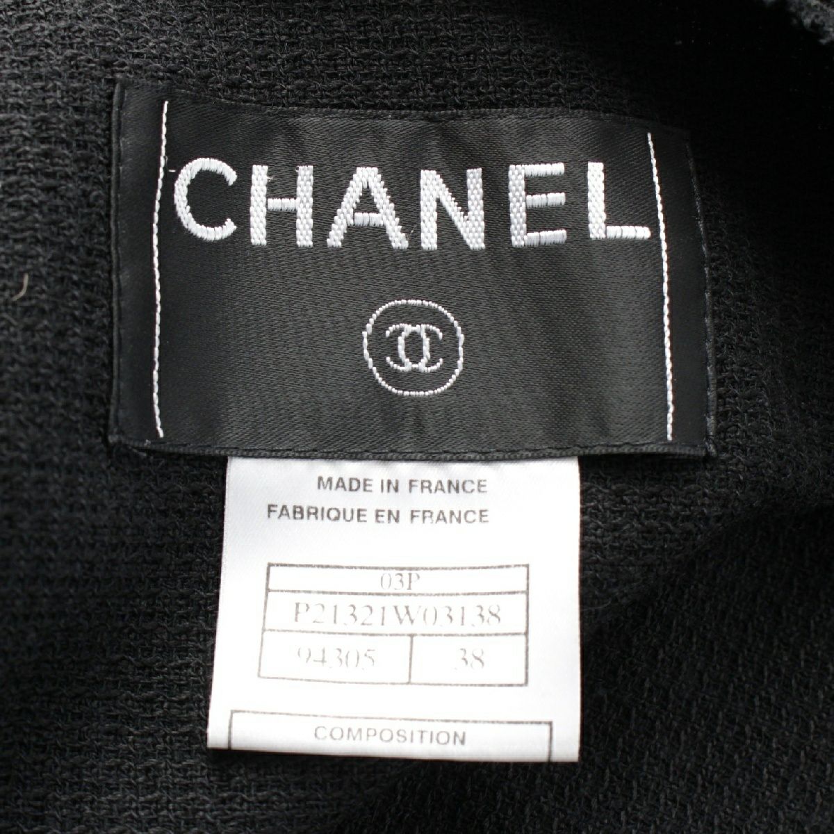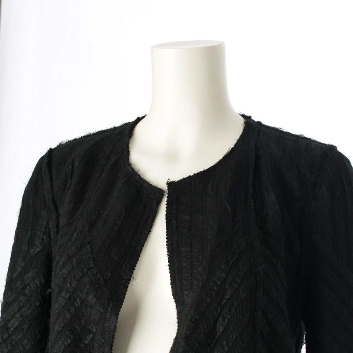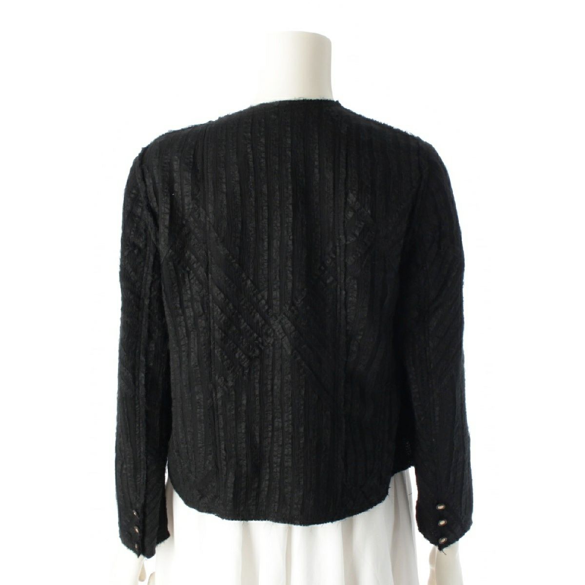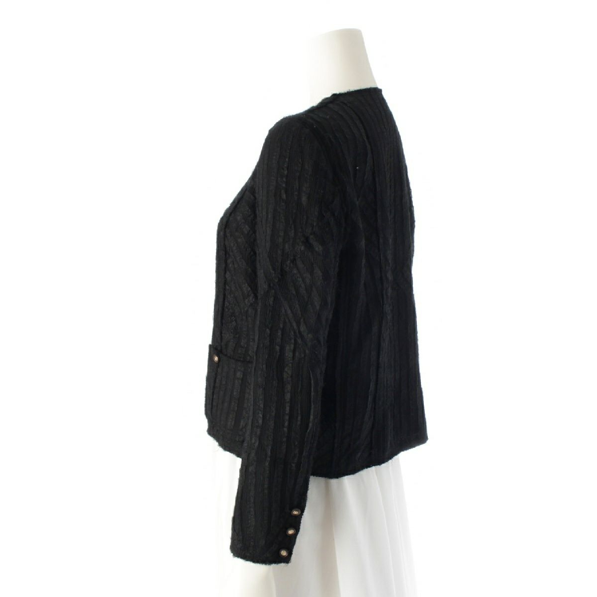 シャネル 03P シルク ナイロン ヴィンテージ ココマークボタン ノーカラージャケット カーディガン トップス アウター P21321 ブラック 38