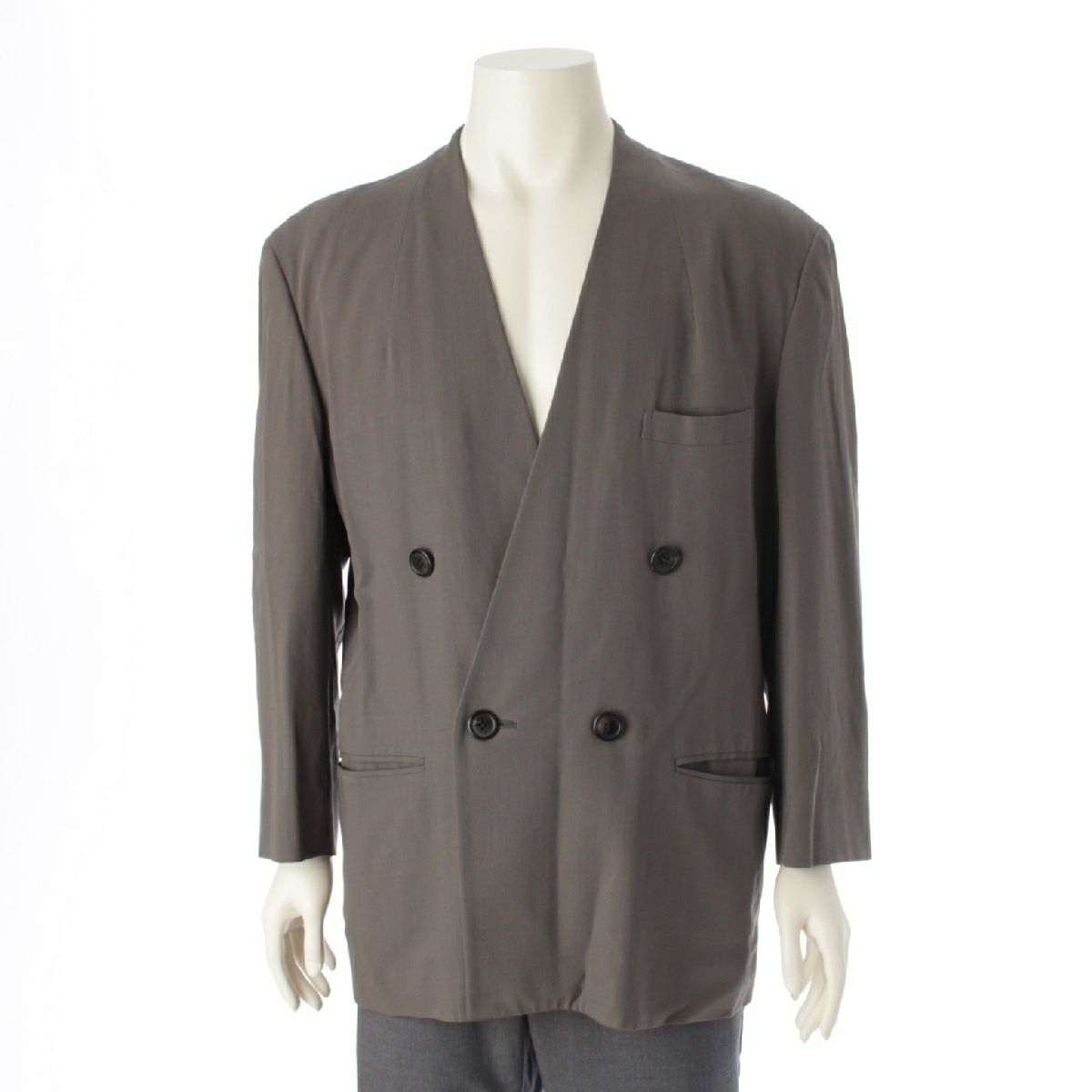 イッセイミヤケ メン ウール ダブルブレスト 変形 ノーカラージャケット ME41-FD047 グレージュ S