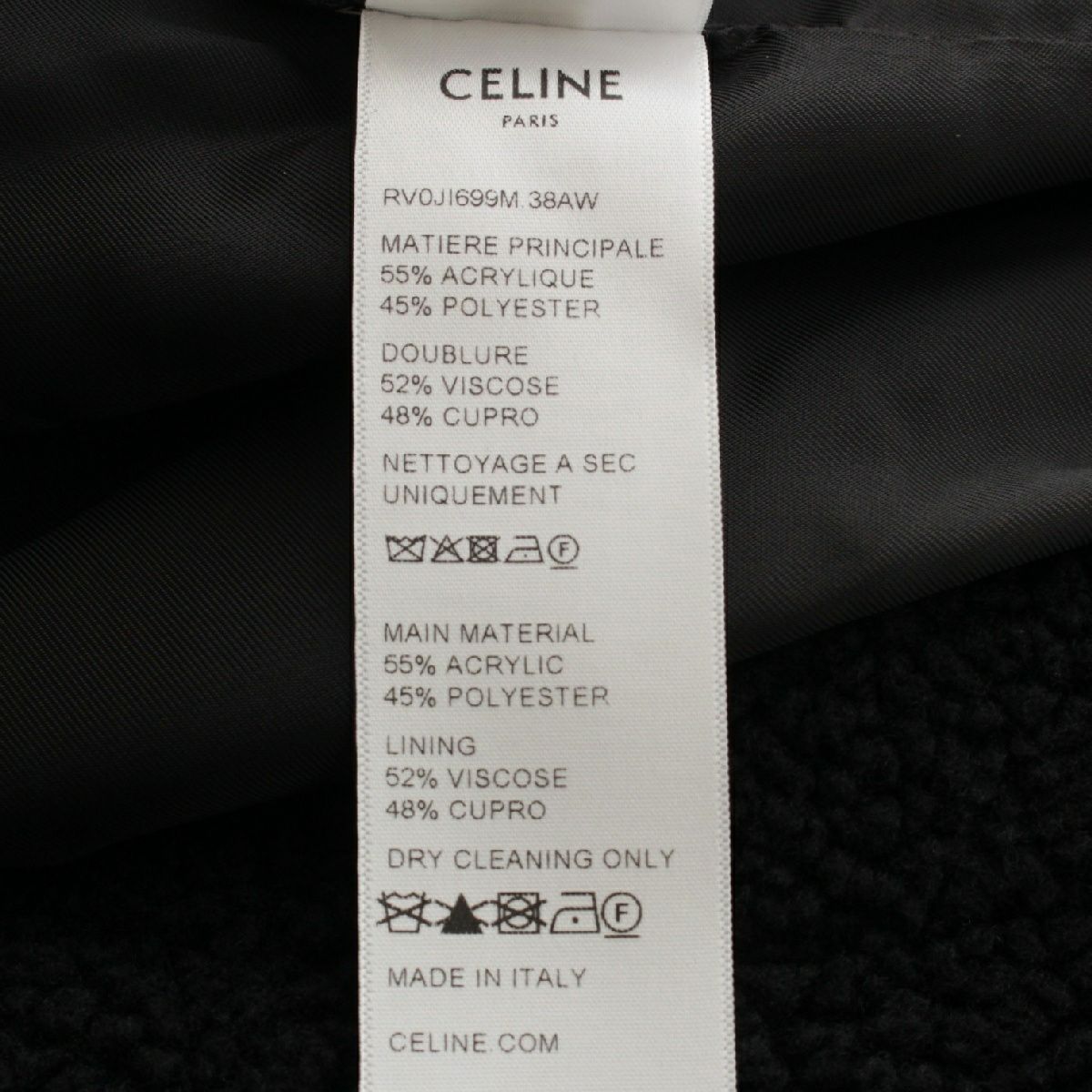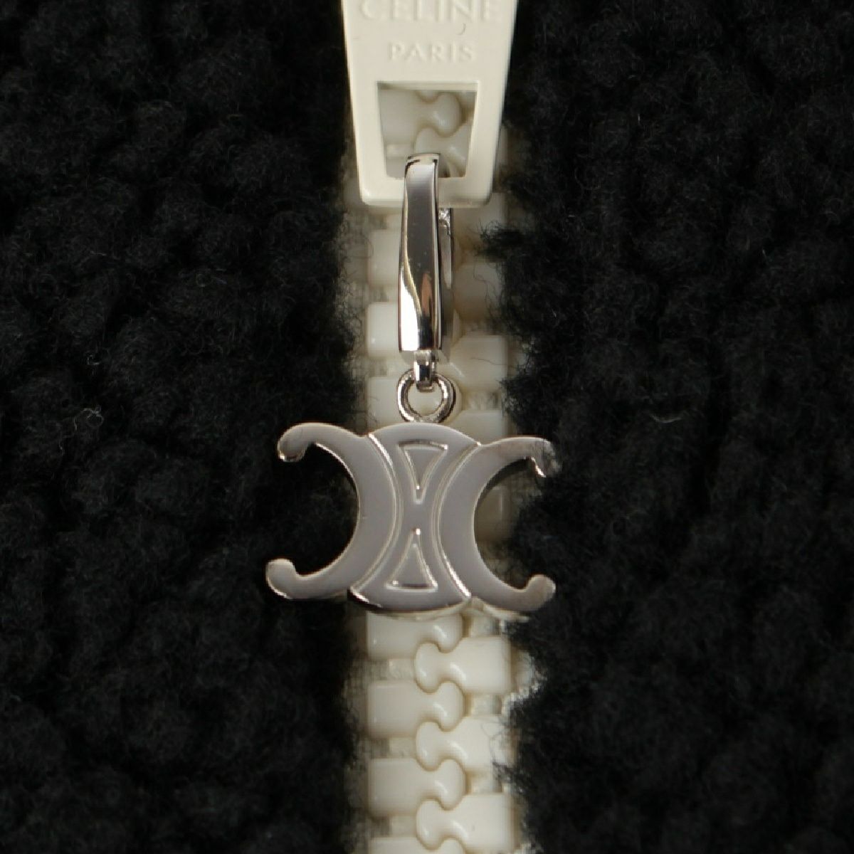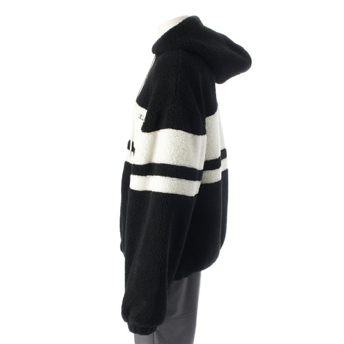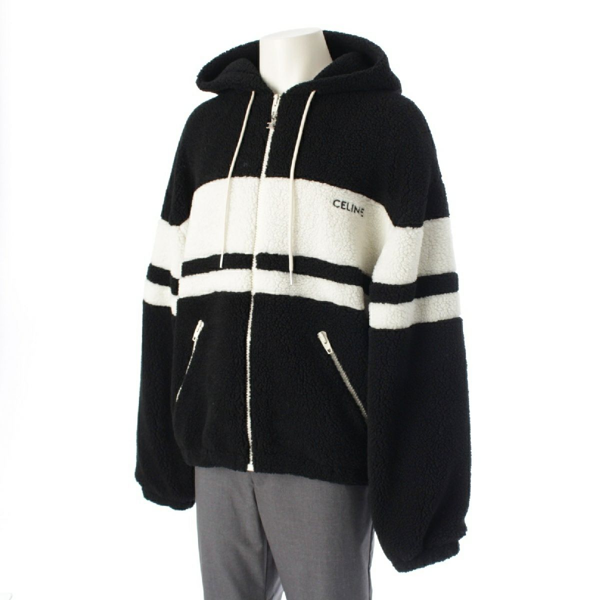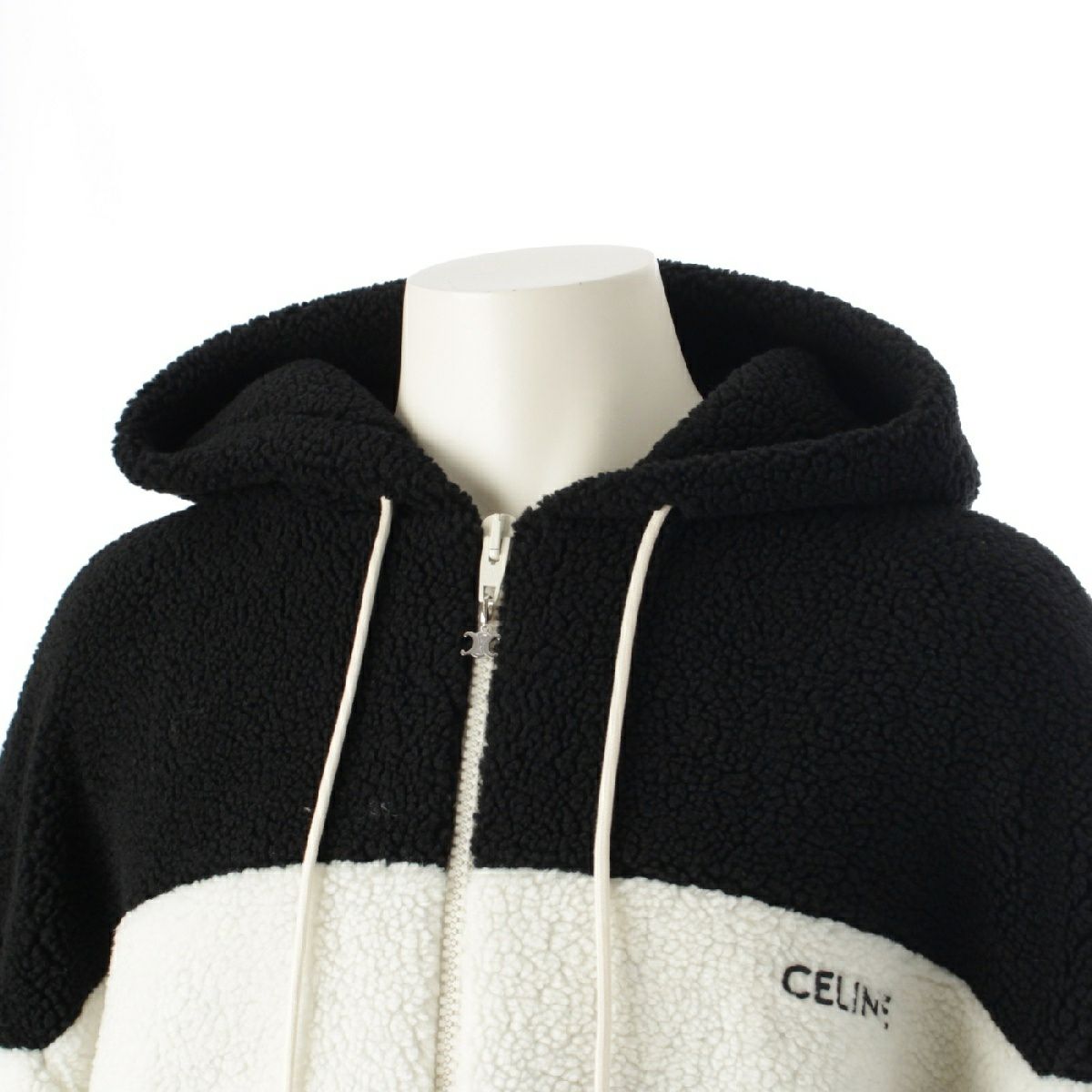 セリーヌ ロゴ トリオンフ フード フリース ジャケット ブルゾン パーカー アウター RV0J699M ブラック×ホワイト L