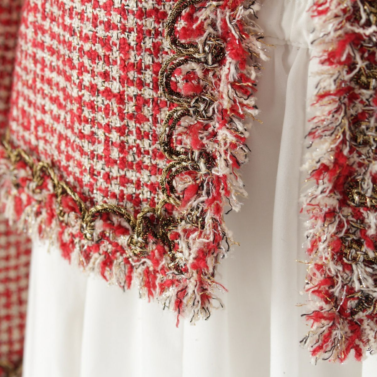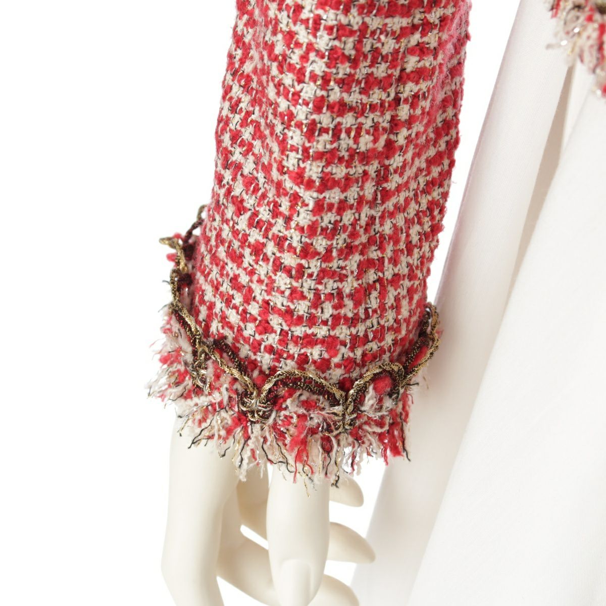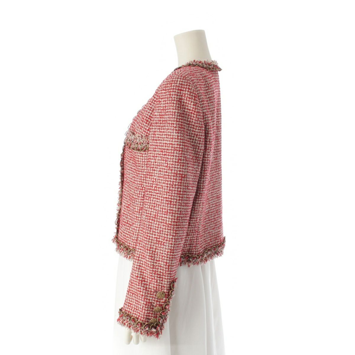 シャネル 10C ノーカラー ツイード ジャケット P37210 レッド 40