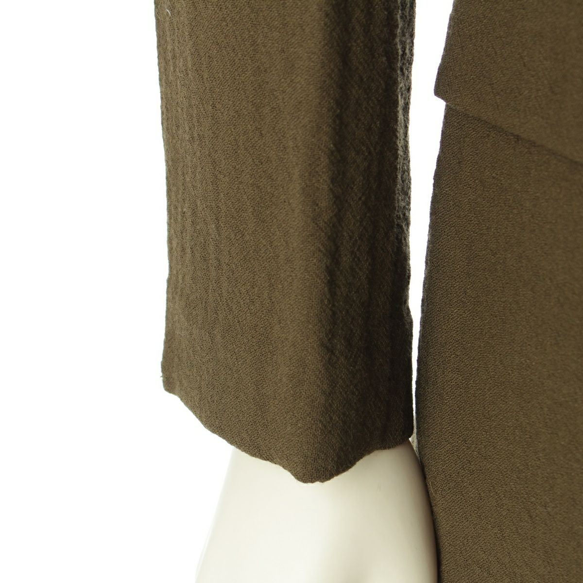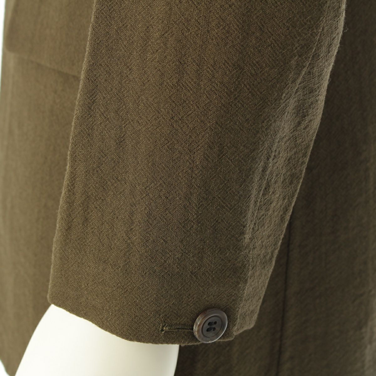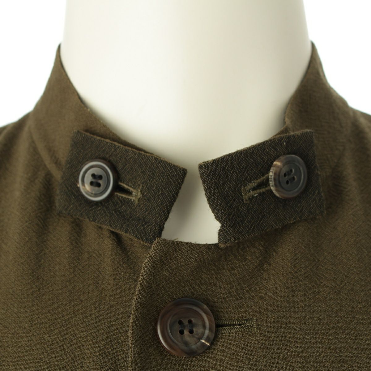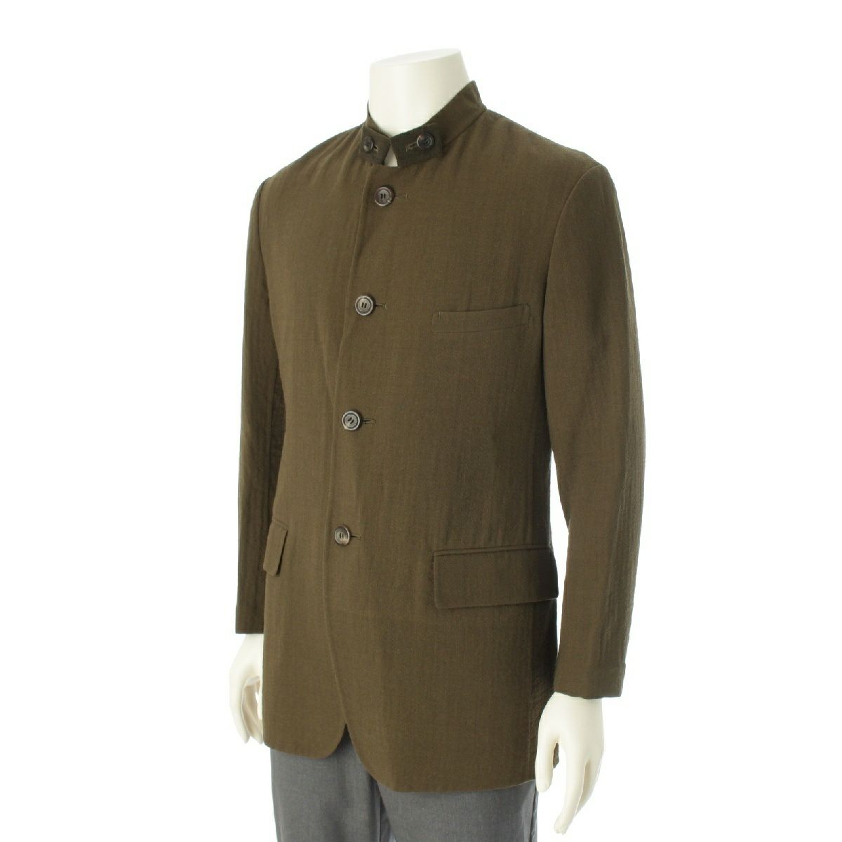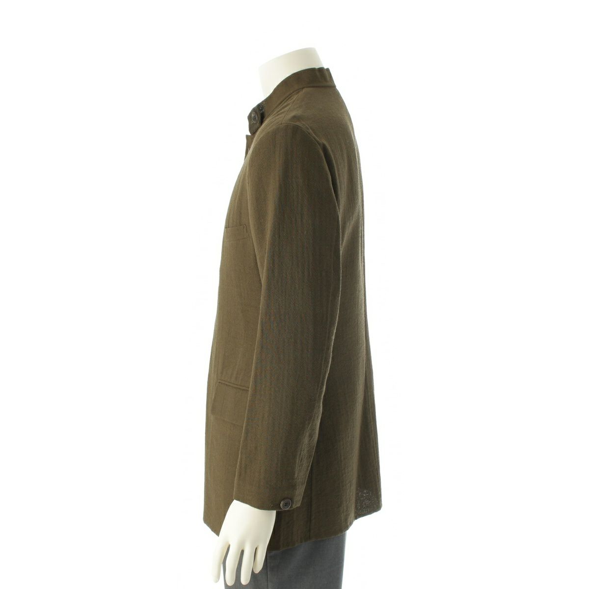 イッセイミヤケ ウール デザイン襟 マオカラー ノーカラージャケット IM53-FD119 カーキ M