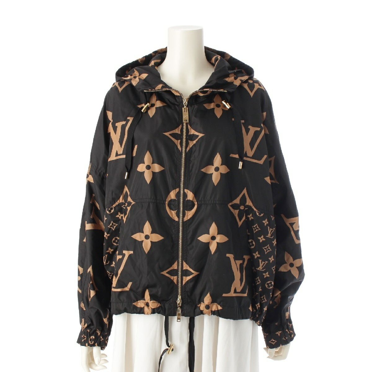 ルイヴィトン ナイロン ミックスモノグラム フーテッド ジャケット ブルゾン パーカー アウター ブラック ブラウン 38